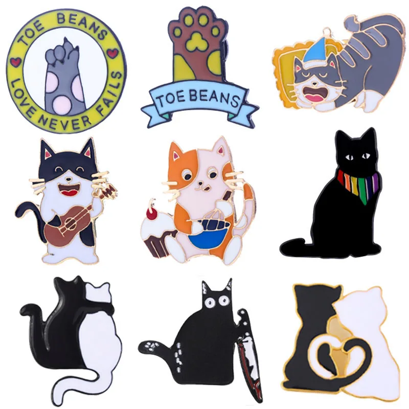 1PCs Fashion Cartoon Animal Brooch Cute Cat Love Cat Knife Cat Enamel Pin Badge Backpack Jewelry Gift