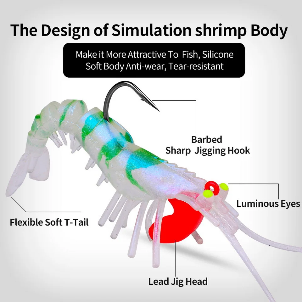 1pcs Luminous Eyes Silicone Shrimp Baits 6g 13g 19g Bionic Soft Prawn Lures Metal Jig Head Sinking Swimbait Wobbler Jigging Hook