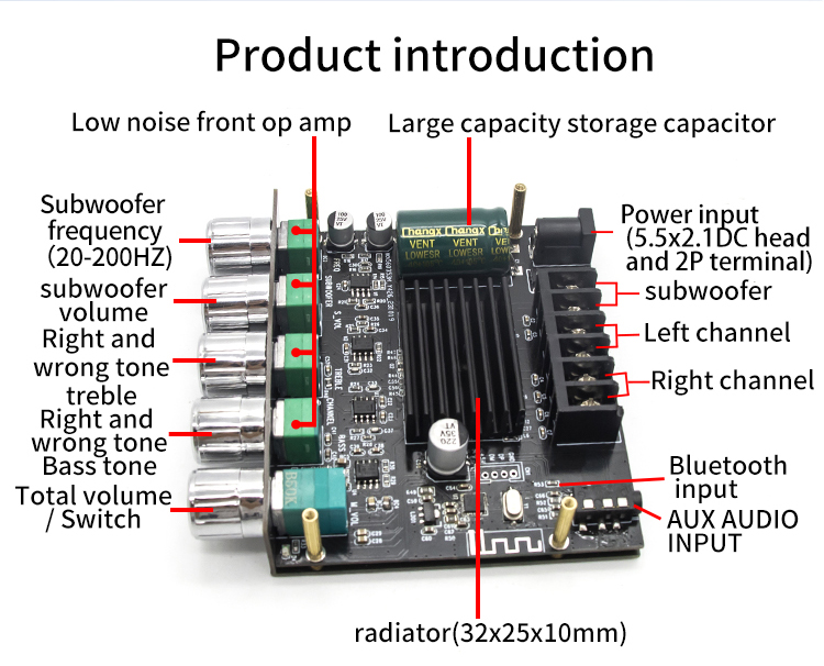 2,1 каналов Bluetooth 5,0 сабвуфер 200 Вт Плата усилителя 50 Вт x2 + 100 Вт Плата усилителя мощности аудио стерео усилителя бас усилитель AUX