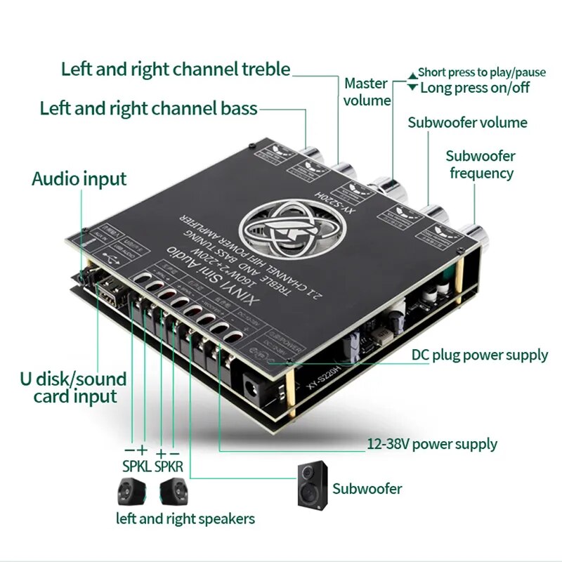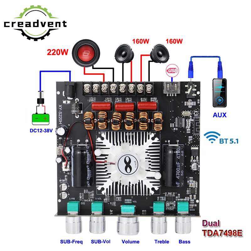 2*160W + 220W Bluetooth TDA7498E Плата усилителя мощности 2,1 Ch Класс D Сабвуфер аудио стерео эквалайзер USB усилитель звуковой карты