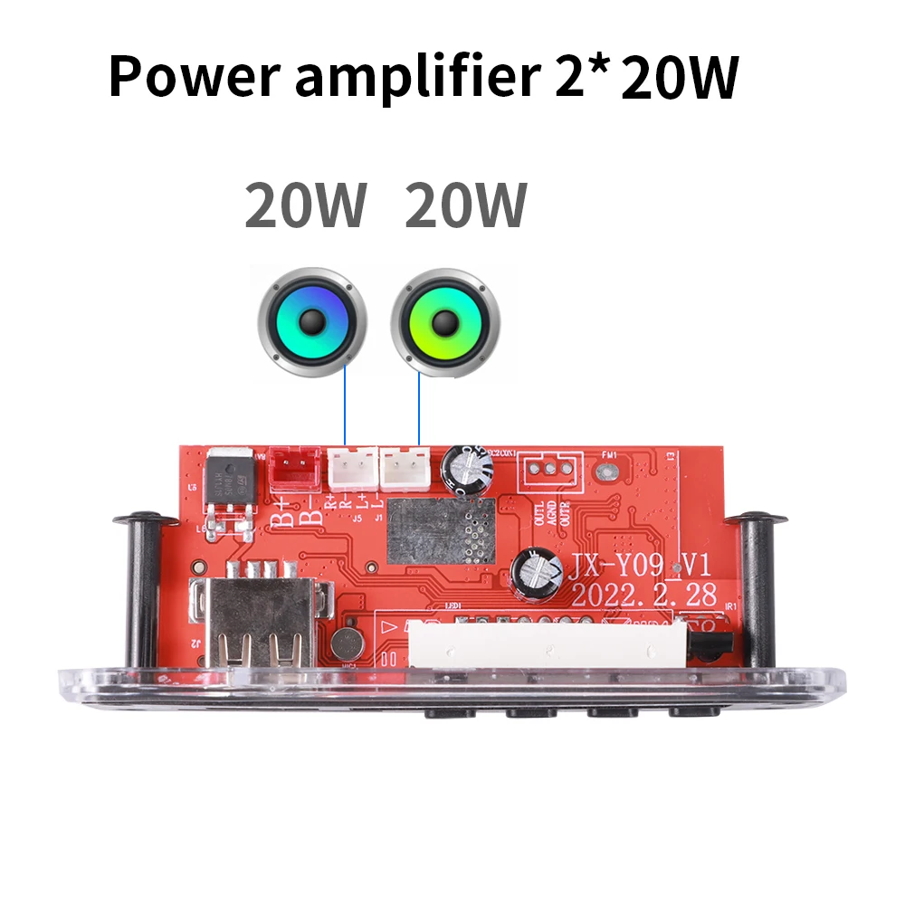2*20W 40W Amplifier 7-18V Stereo MP3 Decoder Board 12V MP3 Player Bluetooth 5.0 USB Module FM AUX Radio Recording Handsfree Call