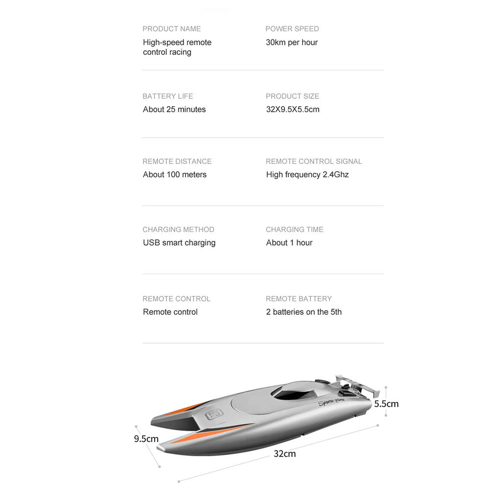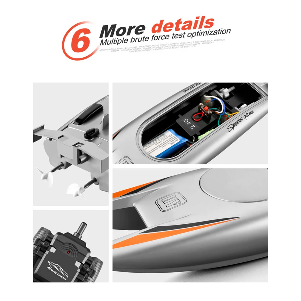 -Частота управления 2, 4 ГГц. Позволяет нескольким лодкам с дистанционным управлением играть одновременно, не мешая друг другу.