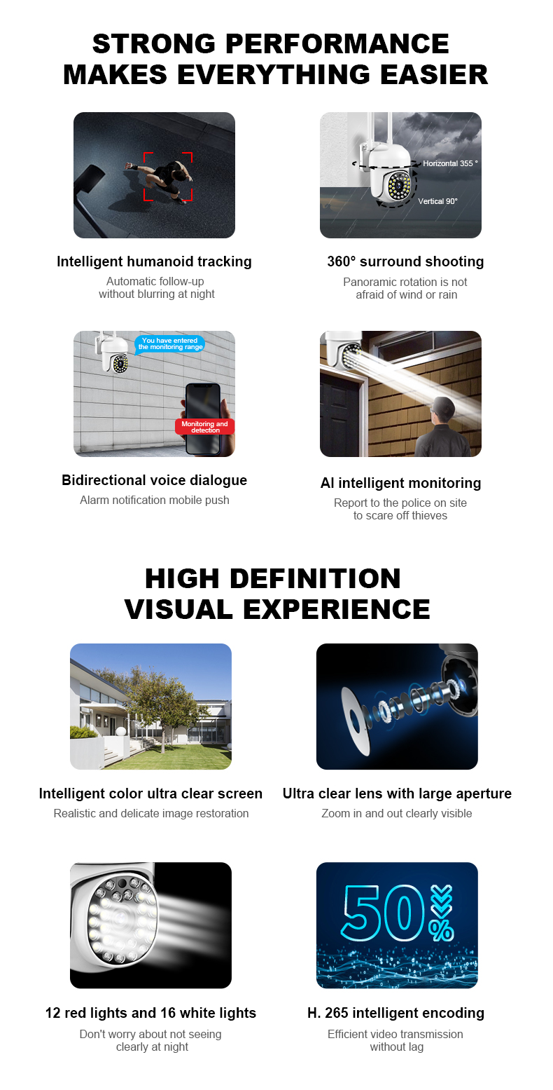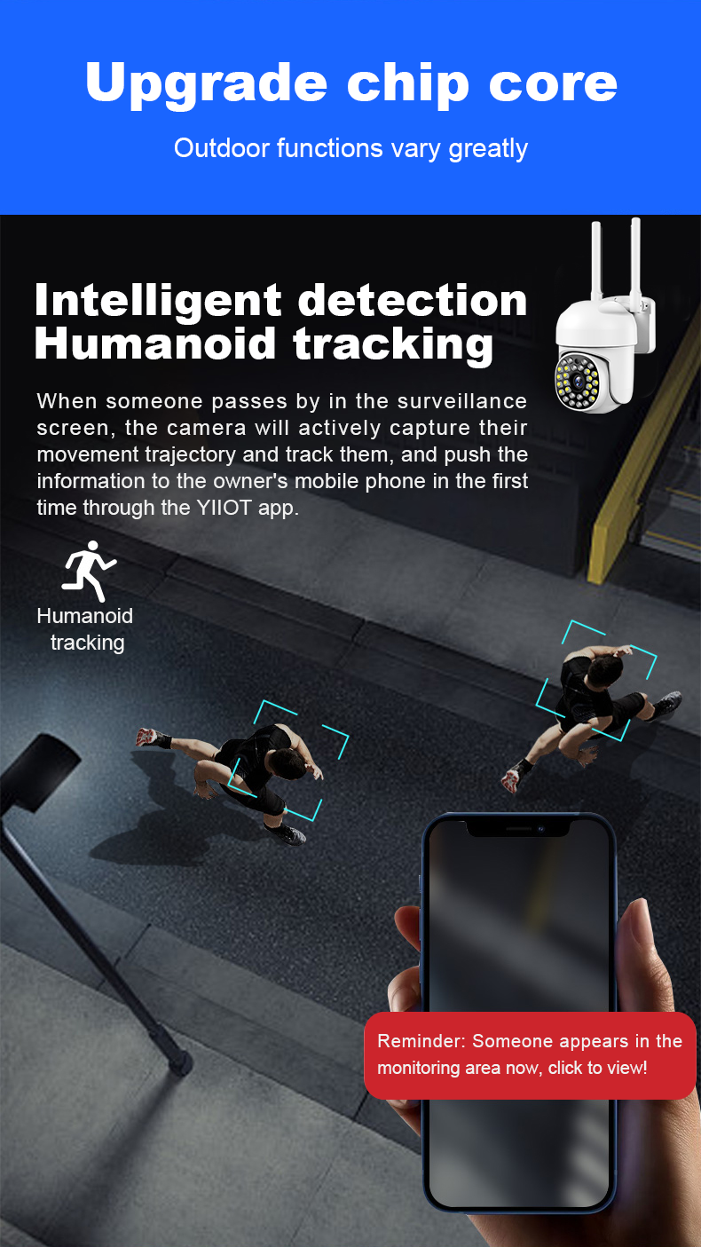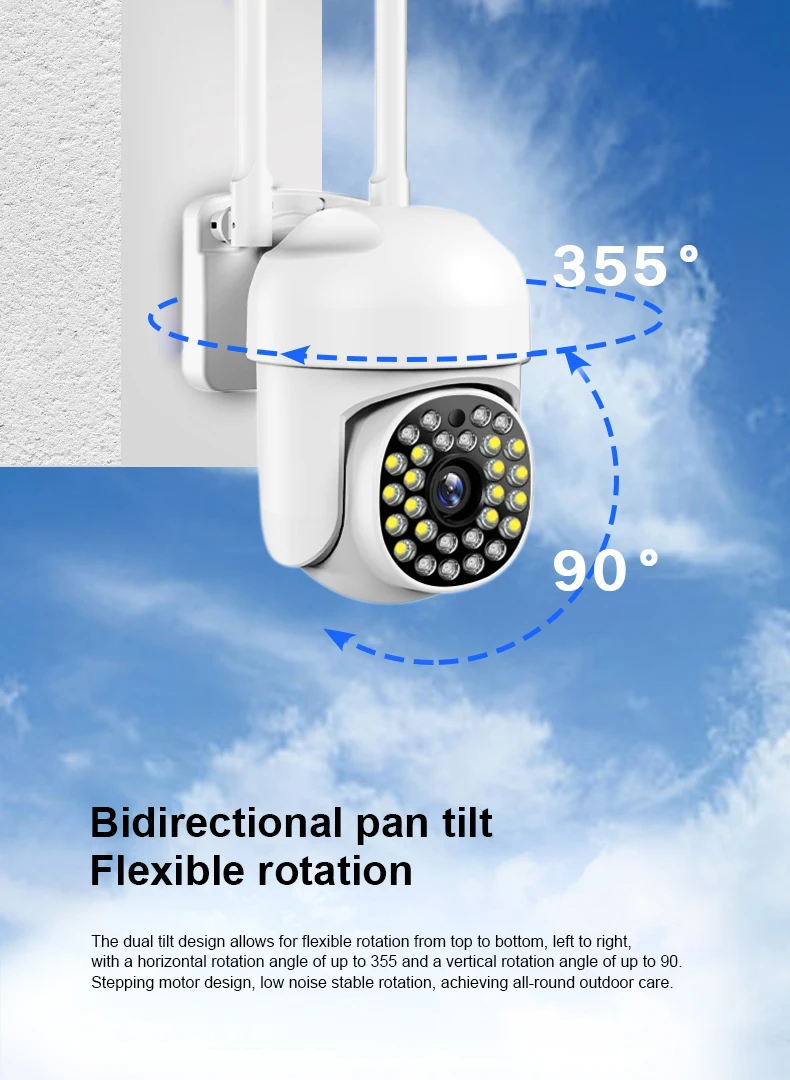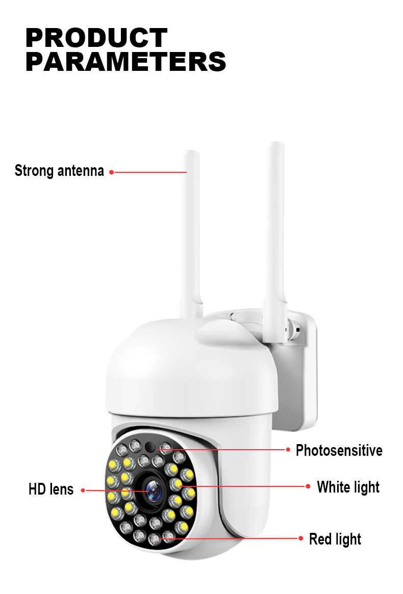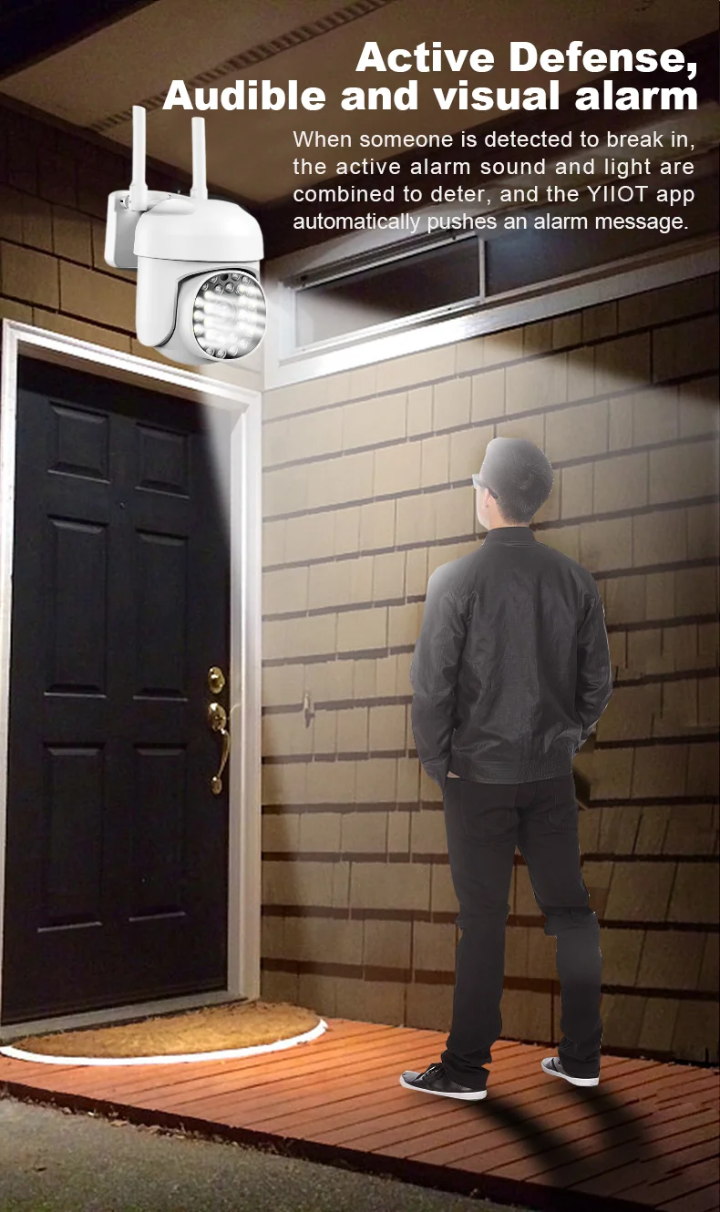 Когда все огни выключены, функция ночного видения включается автоматически и нормально работает ночью. Когда он обнаруживает, что кто-то приближается, он издает сильный белый свет или звуковой сигнал, чтобы уехать. (Необходимо установить в настройках)