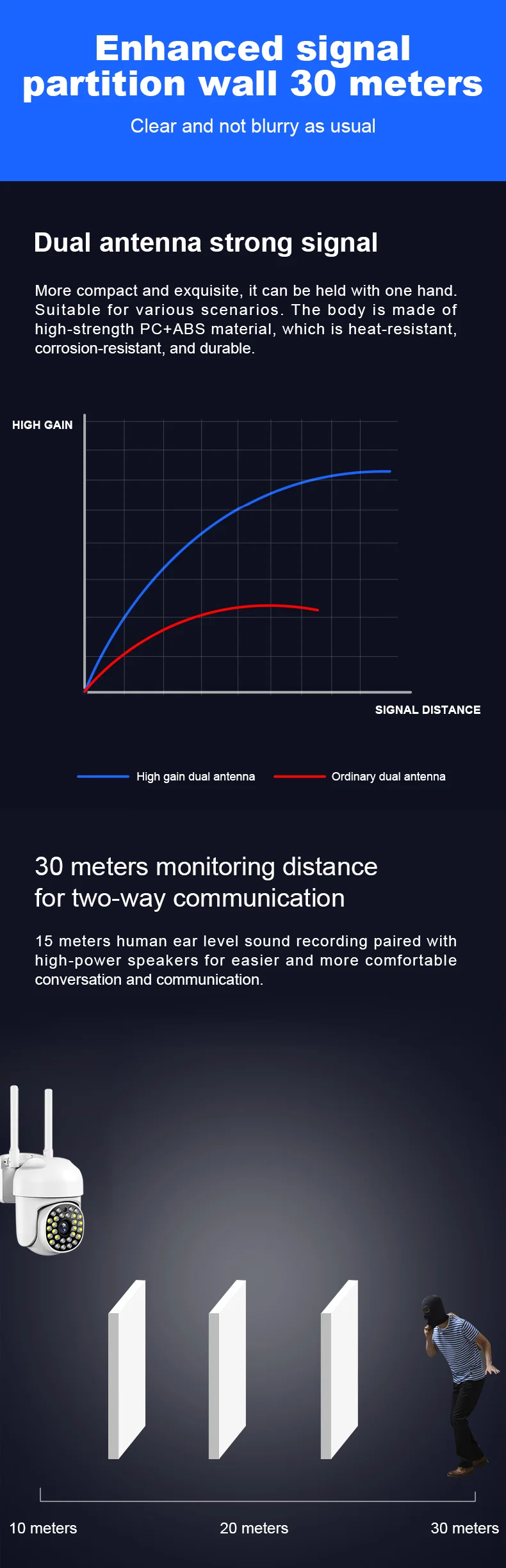 * Двойные антенны 5 дБ передают сигналы, конструкция с высоким коэффициентом усиления, сигнал больше и сильнее;