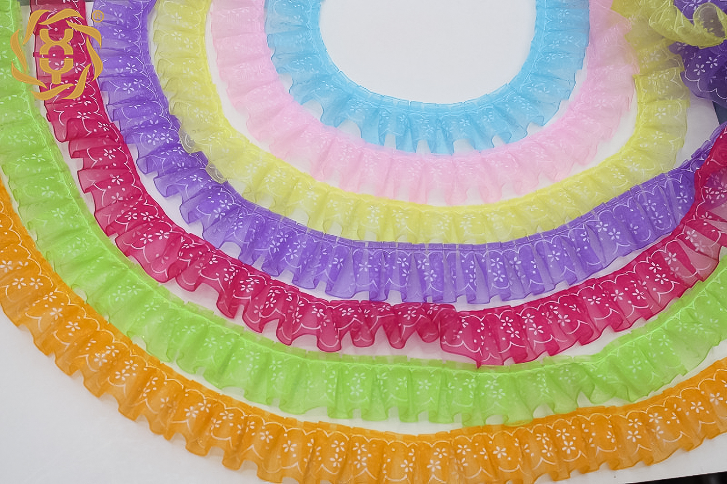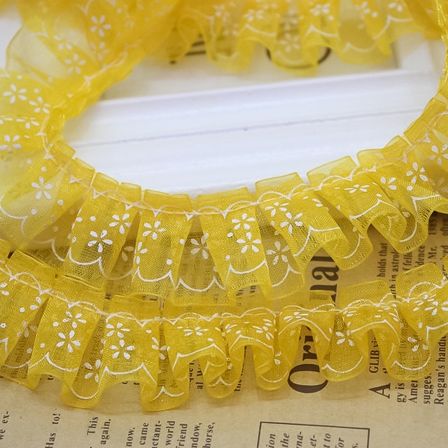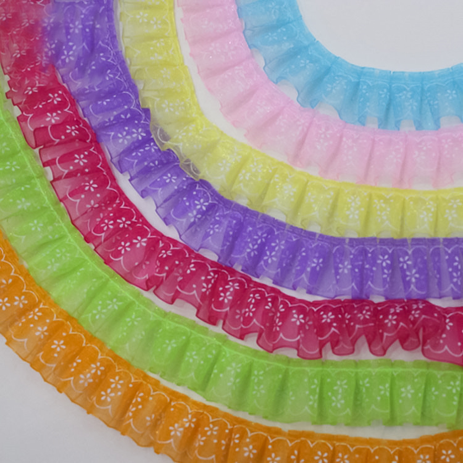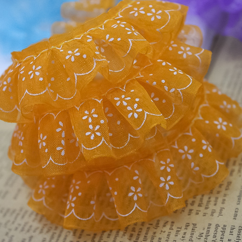 2,5 см с принтом из органзы, плиссированная лента, кружево с рюшами по краям для плиссированной кукольной юбки, украшения для одежды и швейные принадлежности