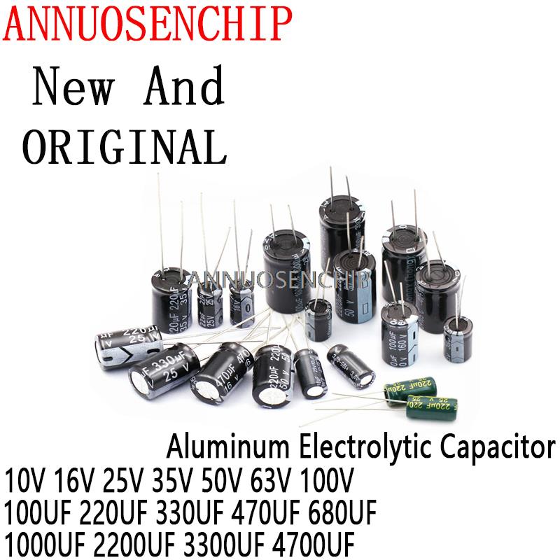 2-50 шт., алюминиевый электролитический конденсатор 10 в 16 в 25 в 35 в 50 в 63 в 100 в 100 мкФ 220 мкФ 330 мкФ 470 мкФ 680 мкФ 1000 мкФ 2200 мкФ 3300 мкФ 4700 мкФ
