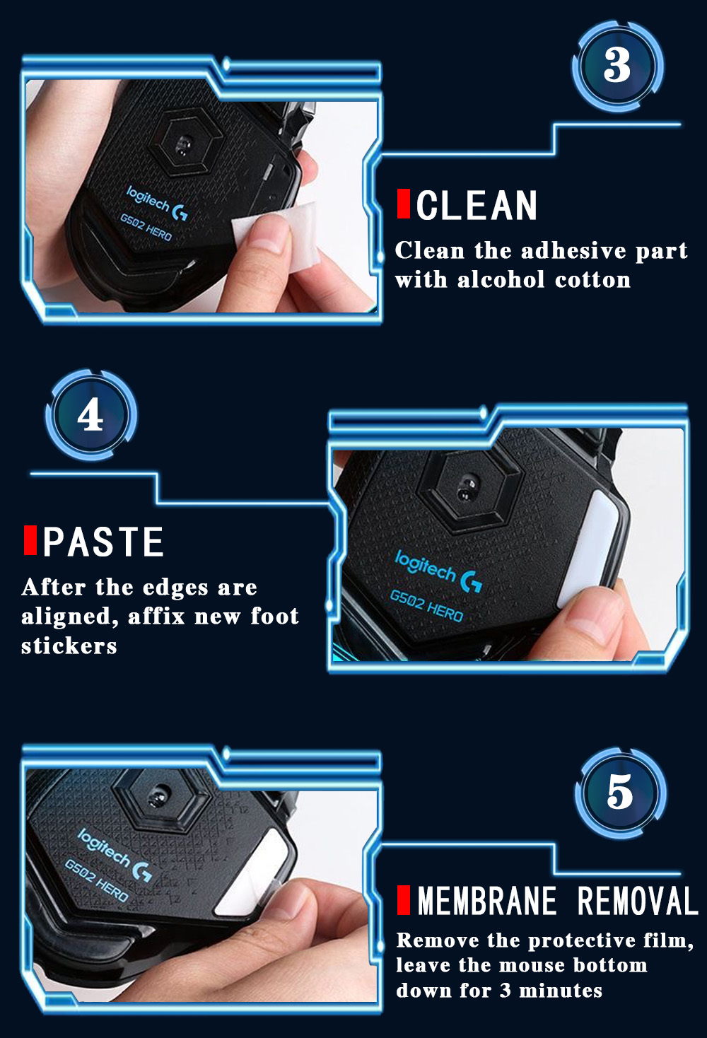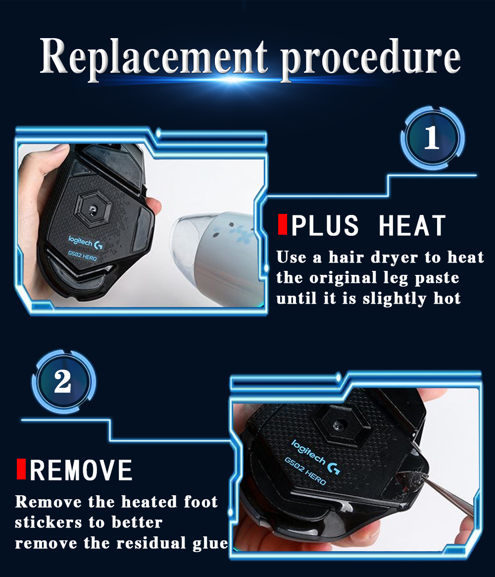 2. При удалении текущих/стандартных ножек мыши, если в гнездах для ножек есть какие-либо остатки клея, используйте спирт, чтобы избавиться от него.
