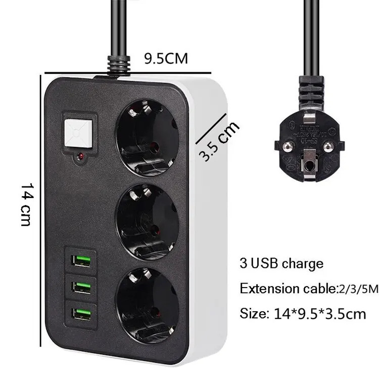 2 круглых контакта удлинитель 3 розетки 3 USB розетки ЕС штекер RUS Электрический 2 м 3 м 5 м Удлинительный кабель удлинитель