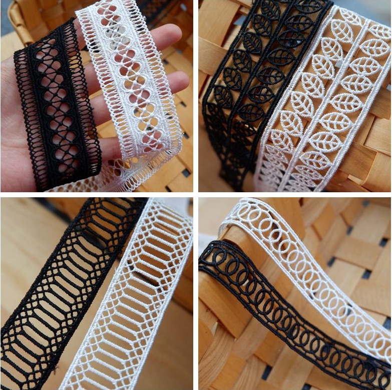 2 метра, яркая белая черная кружевная отделка, тканевая Венецианская Цветочная кружевная нашивка, тесьма, лента, кружевные аксессуары «сделай сам»