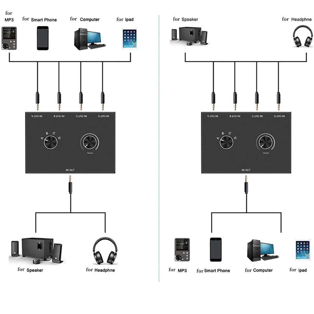 4(1)-в-1 (4)-выход 3,5 мм стерео аудио переключатель