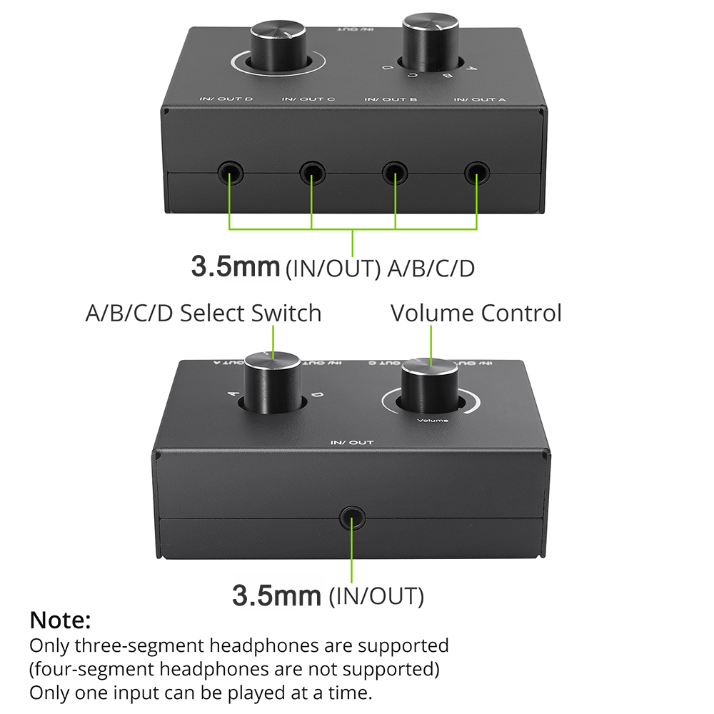 Аудиоселектор 3,5 мм предназначен для клиентов, имеющих несколько источников звука и выходов.