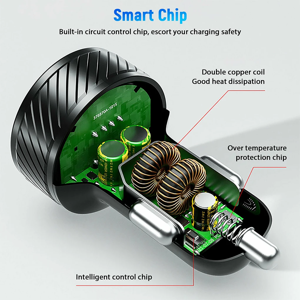 Прочный и прочный: Этот автомобильный зарядный адаптер, в основном изготовленный из алюминиевого сплава и ПК, прочен, долговечен и его нелегко сломать.
