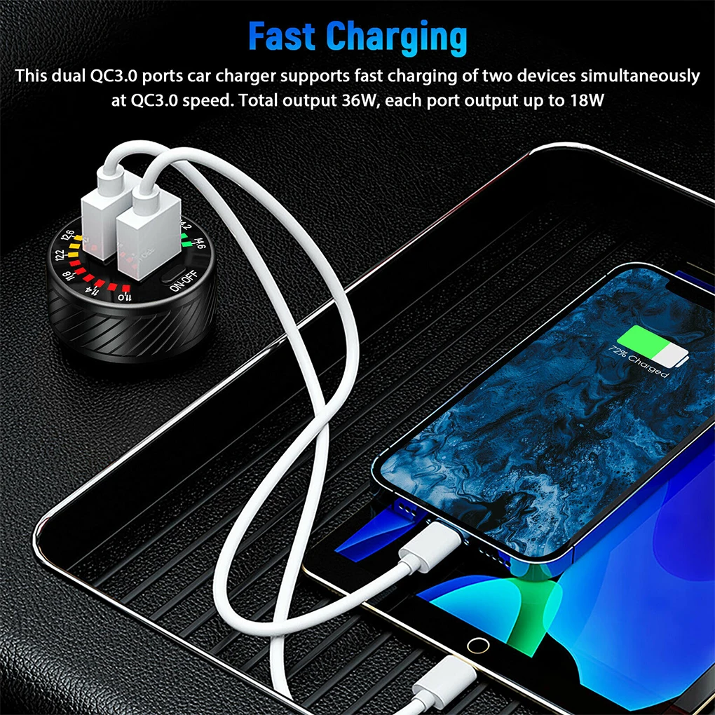 Вольтметр: Этот автомобильный USB-адаптер для зарядки разработан с измерителем напряжения, который может отображать напряжение автомобильного аккумулятора.