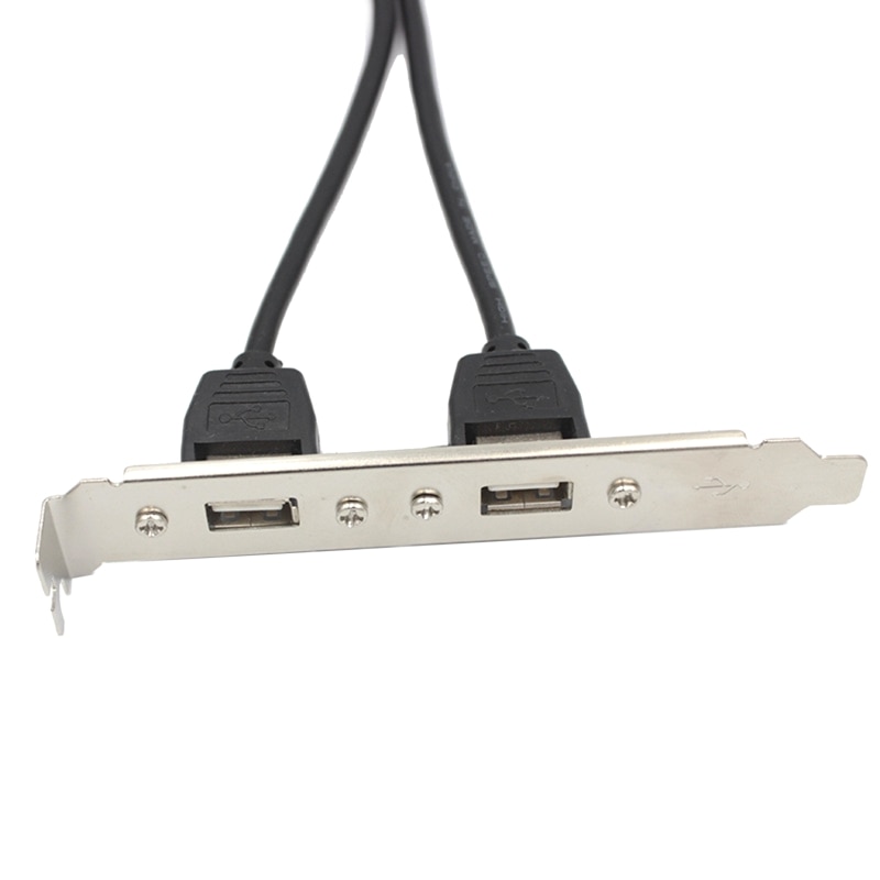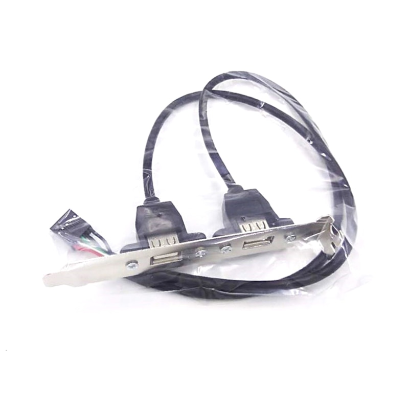 USB 2.0 rear panel extension bracket to 9-pin connector cable (2 ports).<br/>