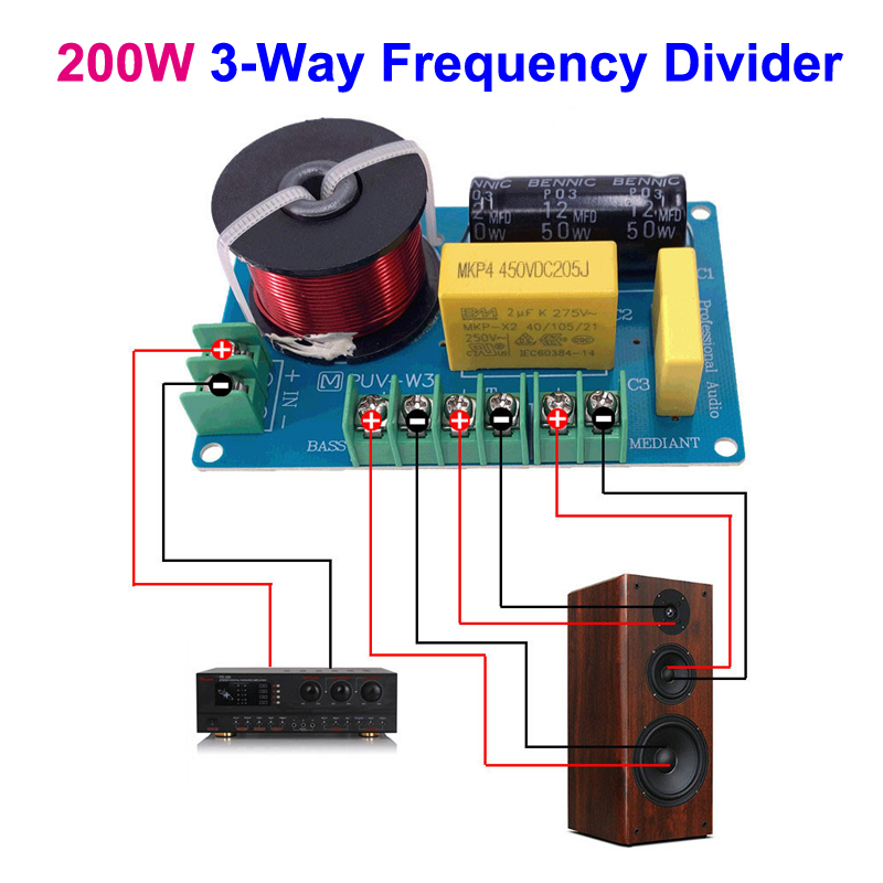 2 шт. 200 Вт 3-сторонний выход аудио hi-fi фильтр монтажная плата стерео Динамик кроссовер фильтры ВЧ/Alto головной изготовитель/бас 3 предмета в комплекте, частота разделители