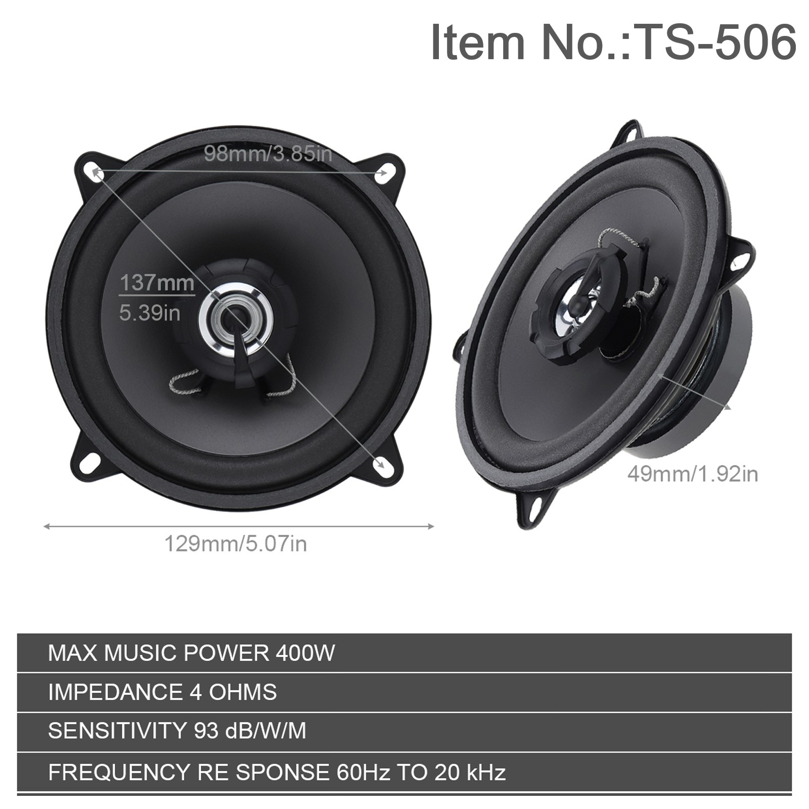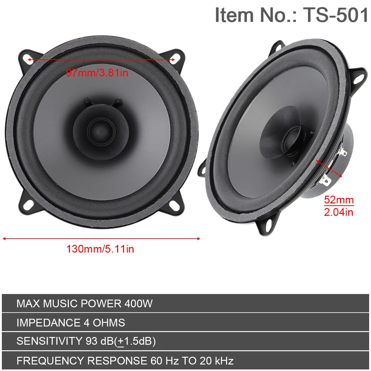 2 шт. 400 Вт 5-дюймовый 2-полосный автомобильный динамик, универсальный автомобильный аудио, музыкальный стерео сабвуфер, полный диапазон частот, HiFi коаксиальные динамики