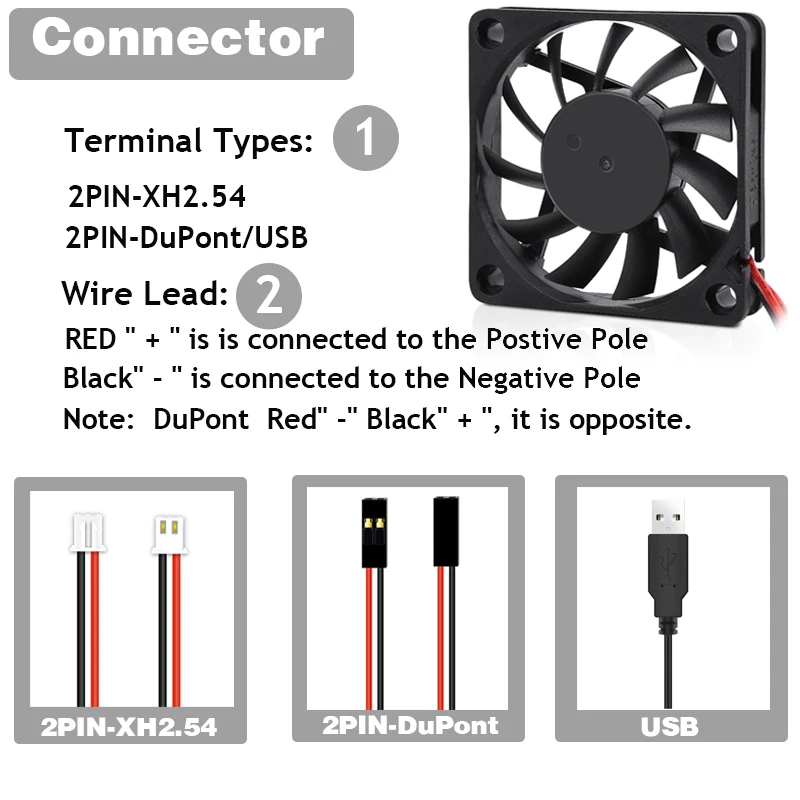 • Разъем питания: 2PIN/3PIN/Dupont/USB