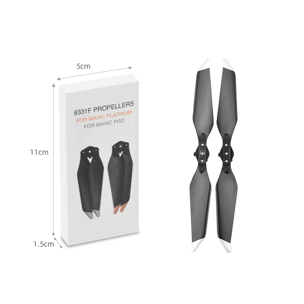 Пропеллеры 8331 имеют совершенно новый аэродинамический дизайн, дающий Mavic Pro Platinum впечатляющую производительность контроля шума. При использовании с платиной Mavic Pro до 4 дБ (60%) шума самолета снижается во время взлета и посадки, а время полета увеличено до 30 минут.