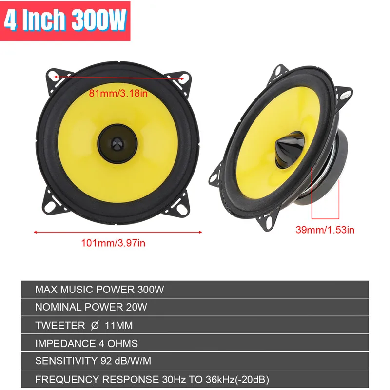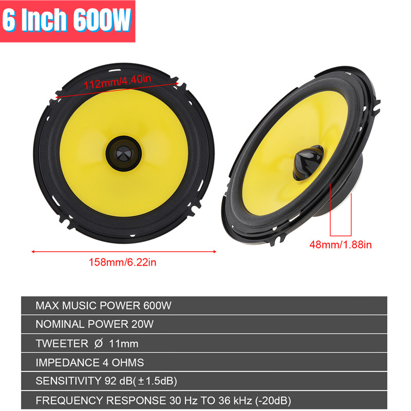• Выходная мощность: 300 Вт (4 дюйма)/400 Вт (5 дюймов) / 600 Вт (6 дюймов)