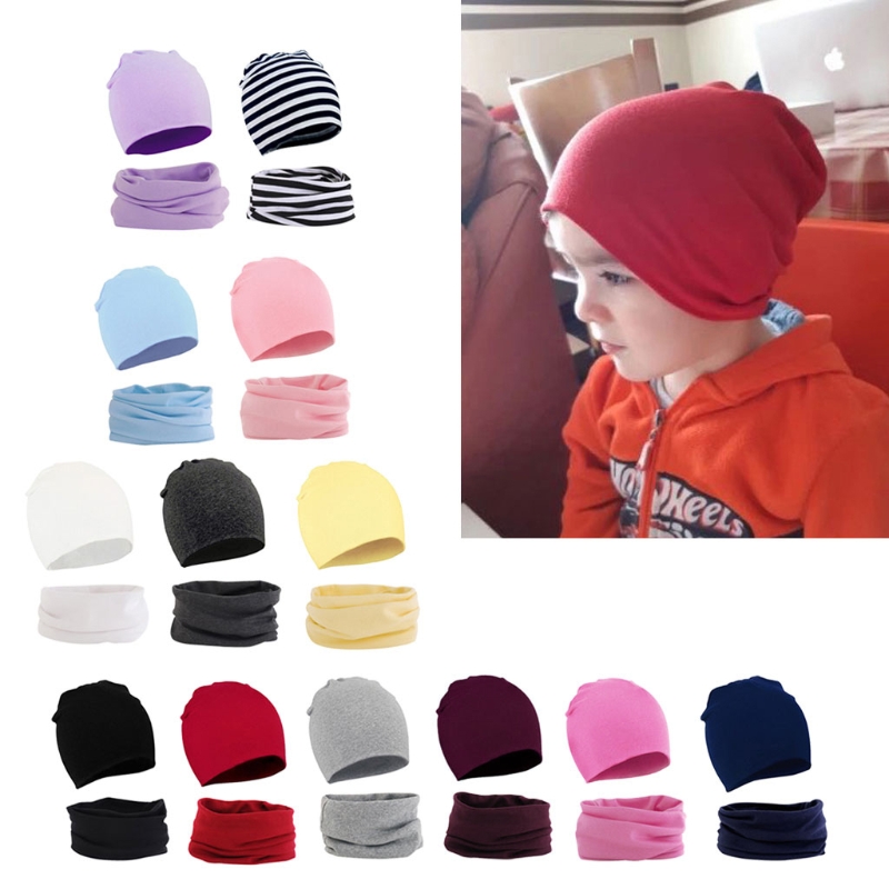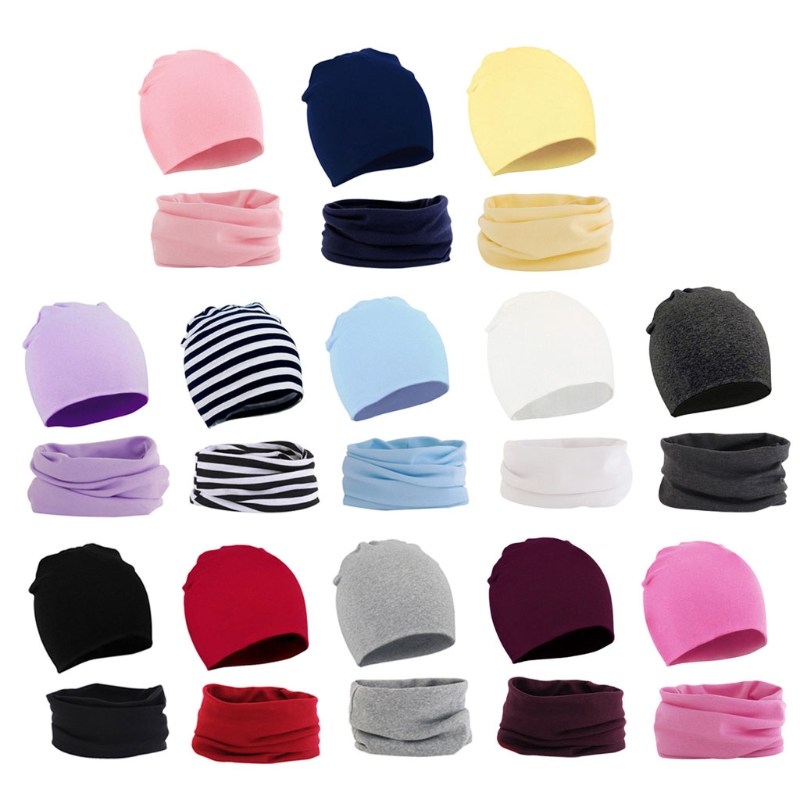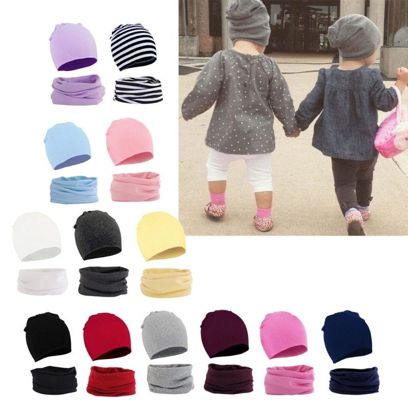 39XF комплект из 2 предметов для детей, шапка и шарф, хлопковая детская шапочка с воротником, Осень-зима, для маленьких мальчиков и девочек, детские теплые шапки, шарфы