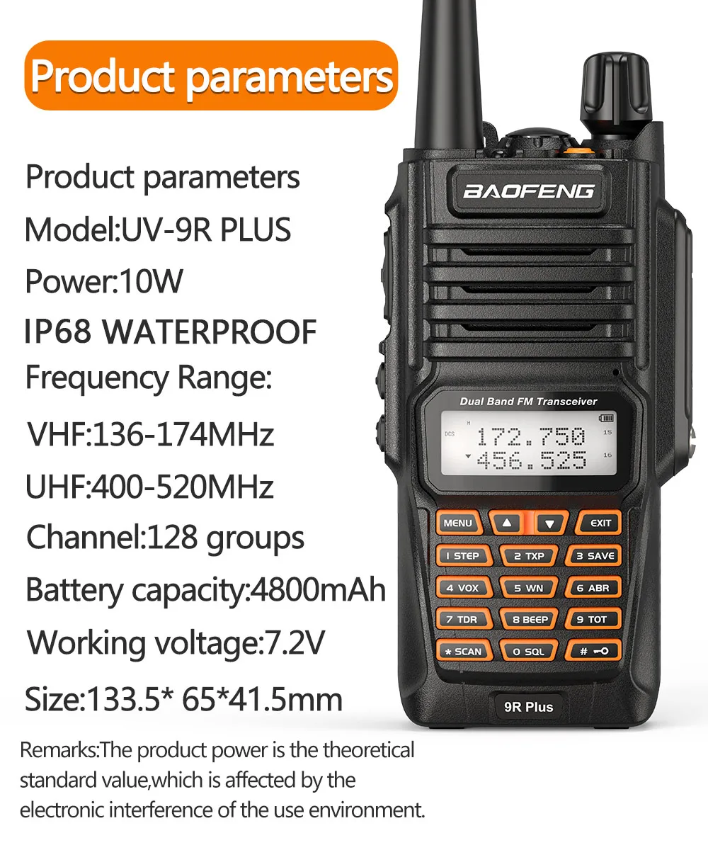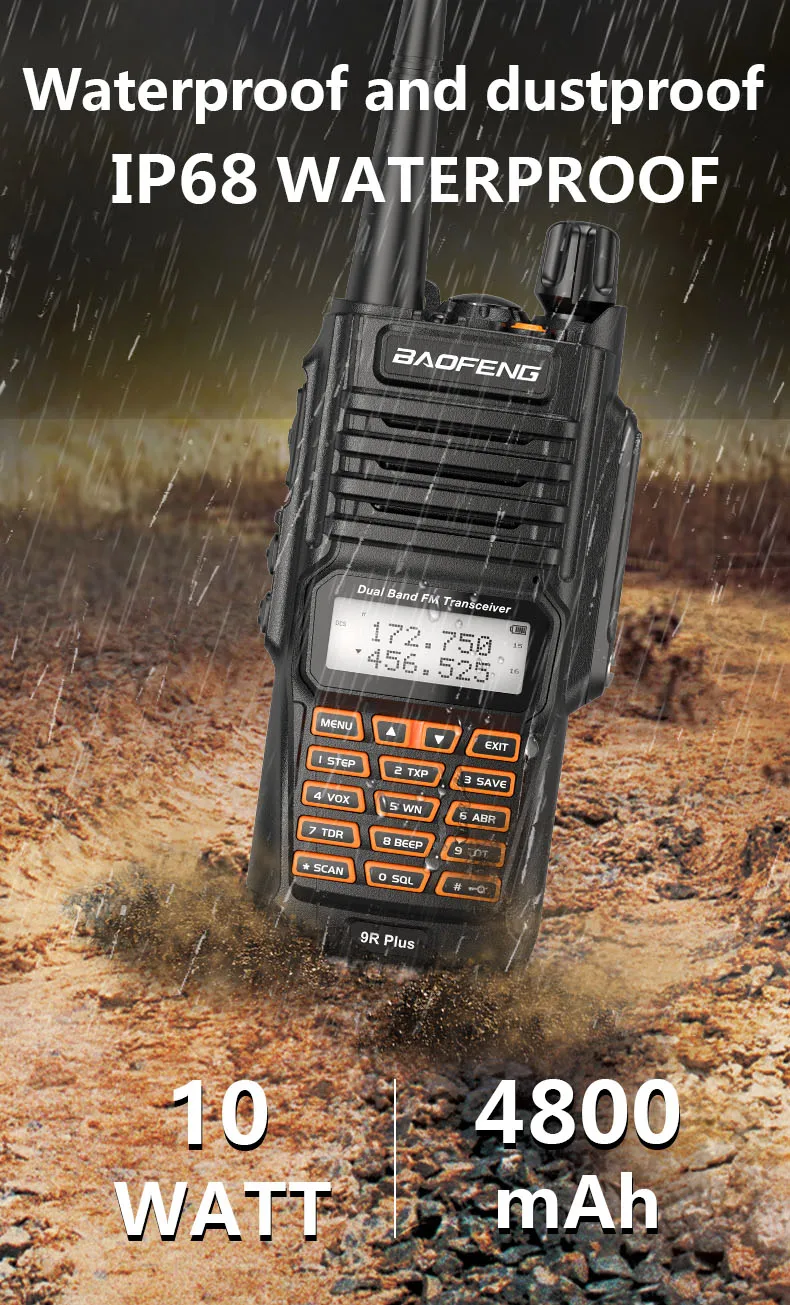 Baofeng UV-9R Plus 10 Вт высокой мощности IP68 Водонепроницаемая двухсторонняя радиосвязь Двухдиапазонная портативная рация обновленная версия UV9R