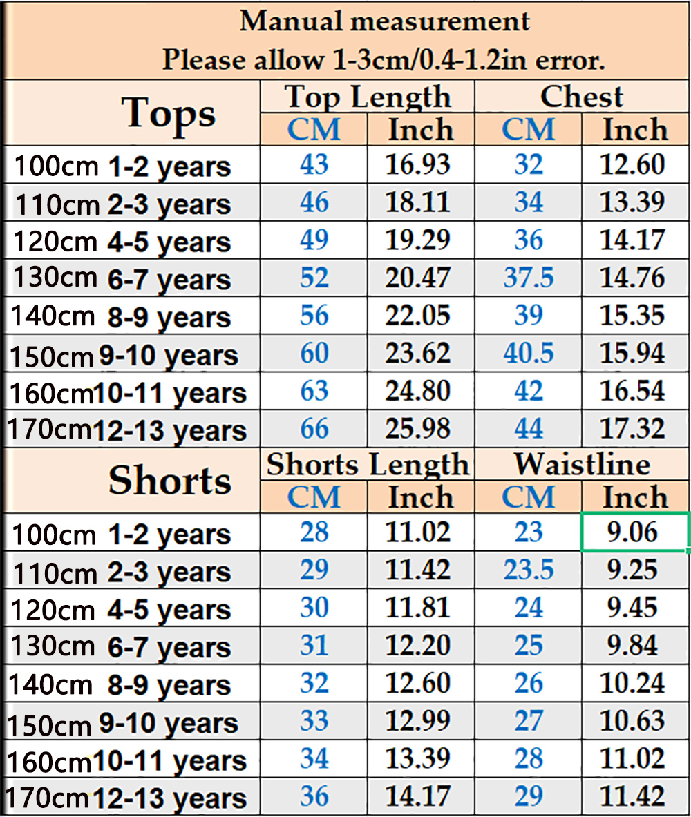 1. Перед заказом выберите в соответствии с фактическим размером детей