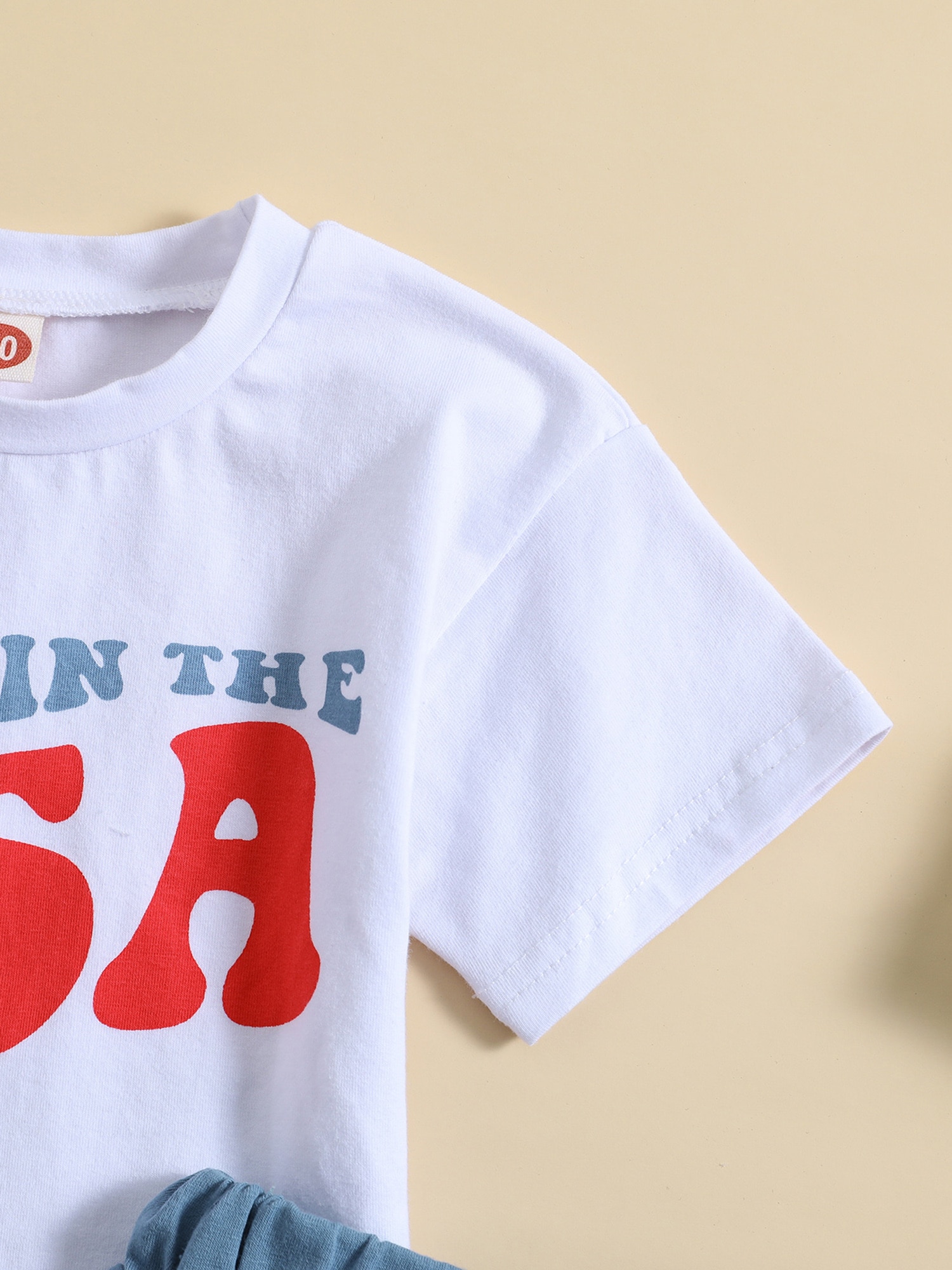 Описание: Костюм брюк мальчиков детей, случайные верхние части печати писем рукава короткой партии улицы + шорты Дравстрингс
