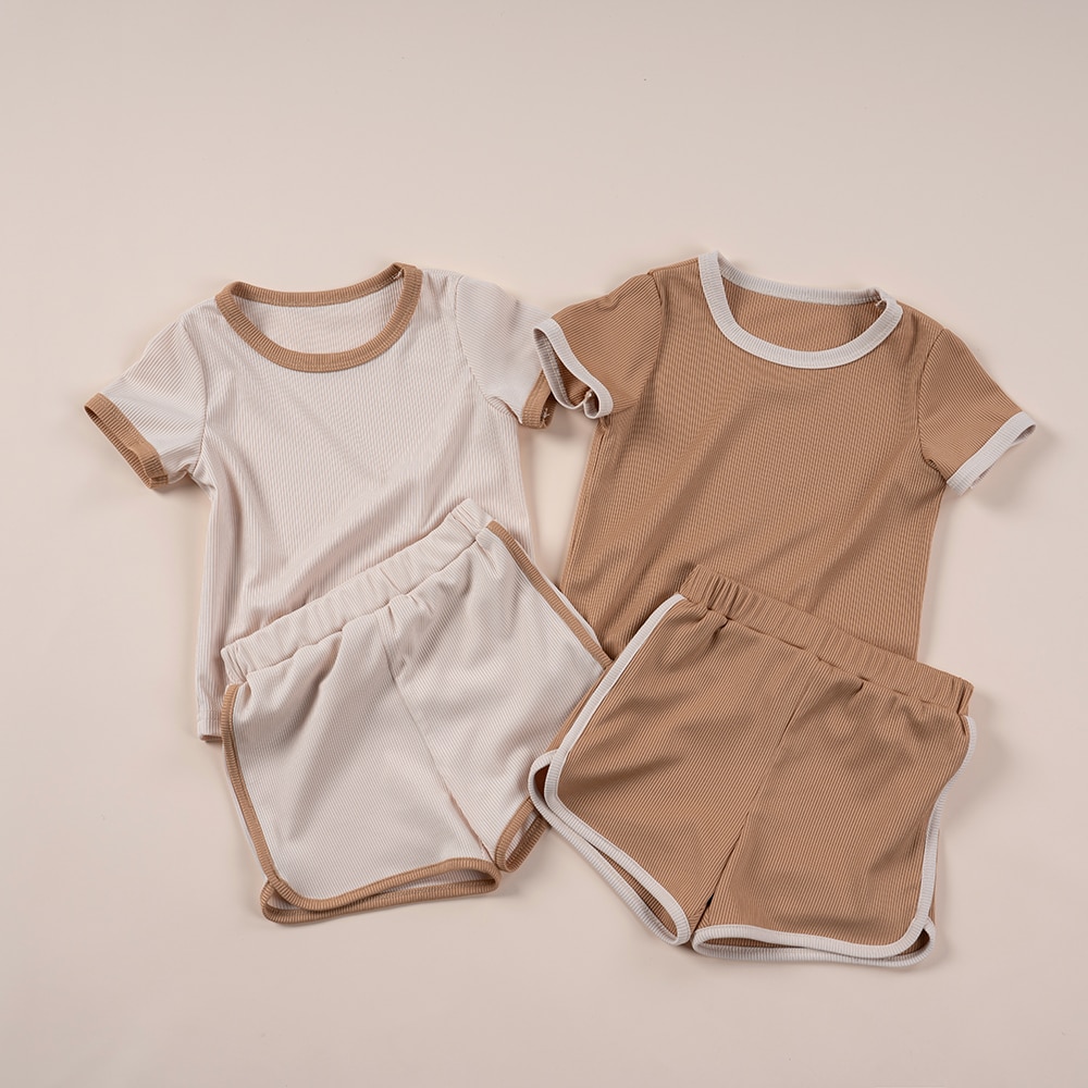 2 шт., хлопковые шорты с коротким рукавом для мальчиков и девочек