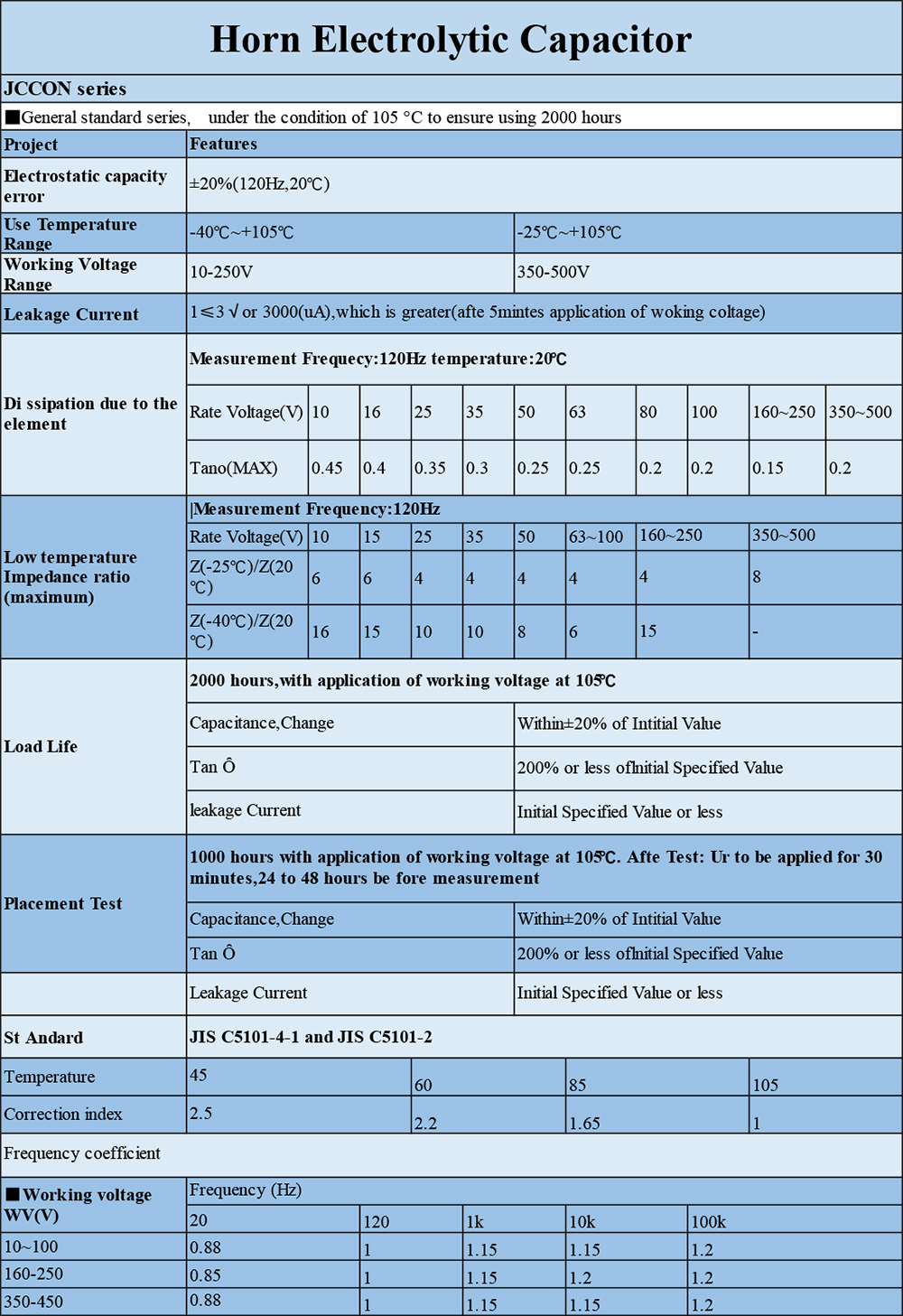 1. Общая стандартная серия, гарантированно используемая в течение 5000 + часов при 105 ℃.