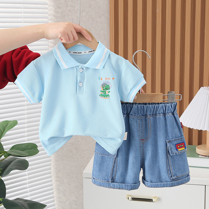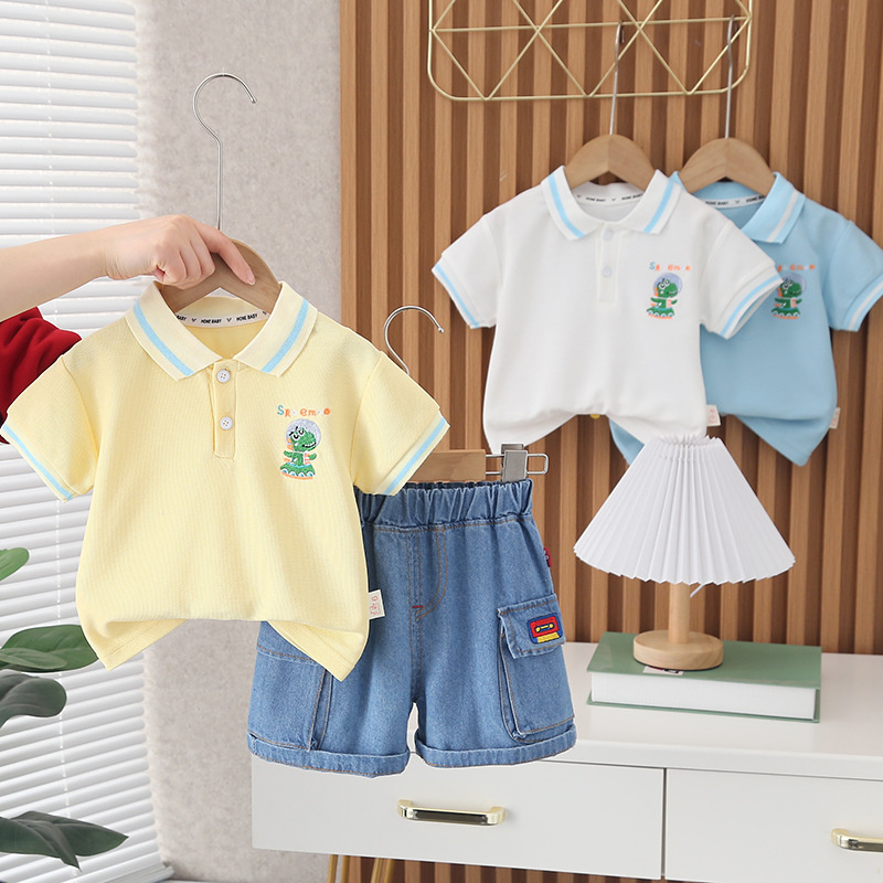 Новый летний костюм для маленьких девочек, детские повседневные футболки для мальчиков, шорты, 2 шт./Компл., Одежда для младенцев, костюм для малышей, детские спортивные костюмыНа 0-5 лет