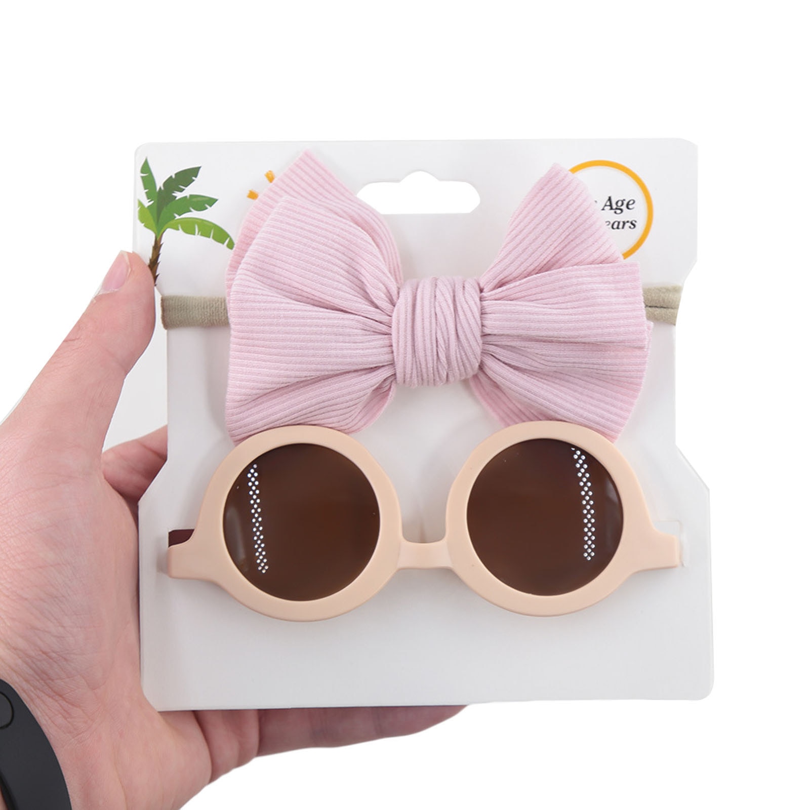 Детский наряд из 2 предметов, Винтажные Солнцезащитные очки UV400 круглой формы + ободок в рубчик с бантом для малышей