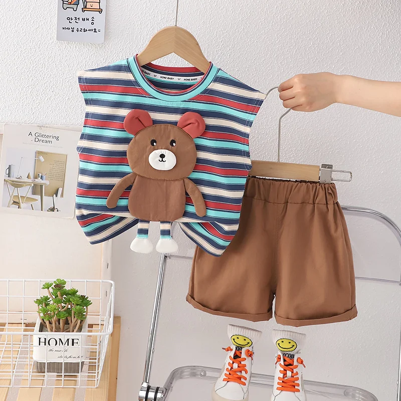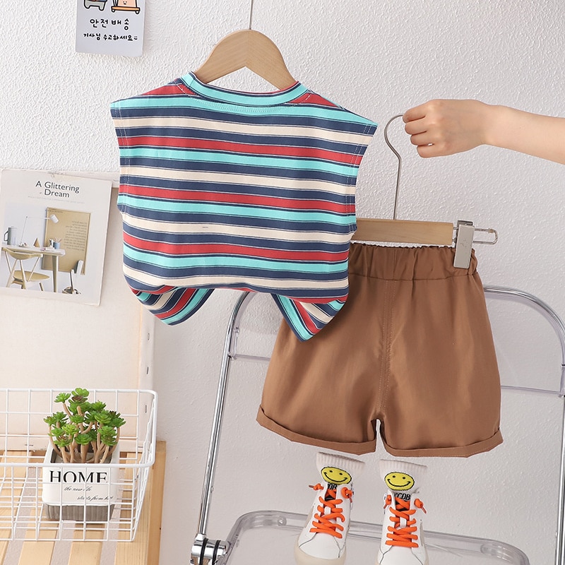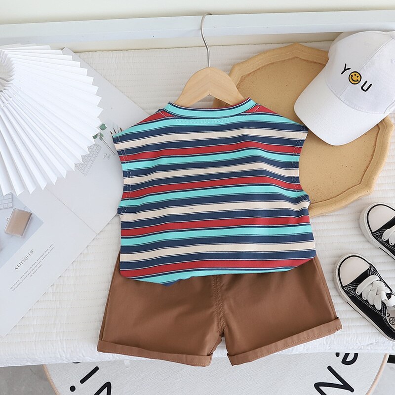2 шт./комплект, жилет и шорты в полоску для мальчиков и девочек