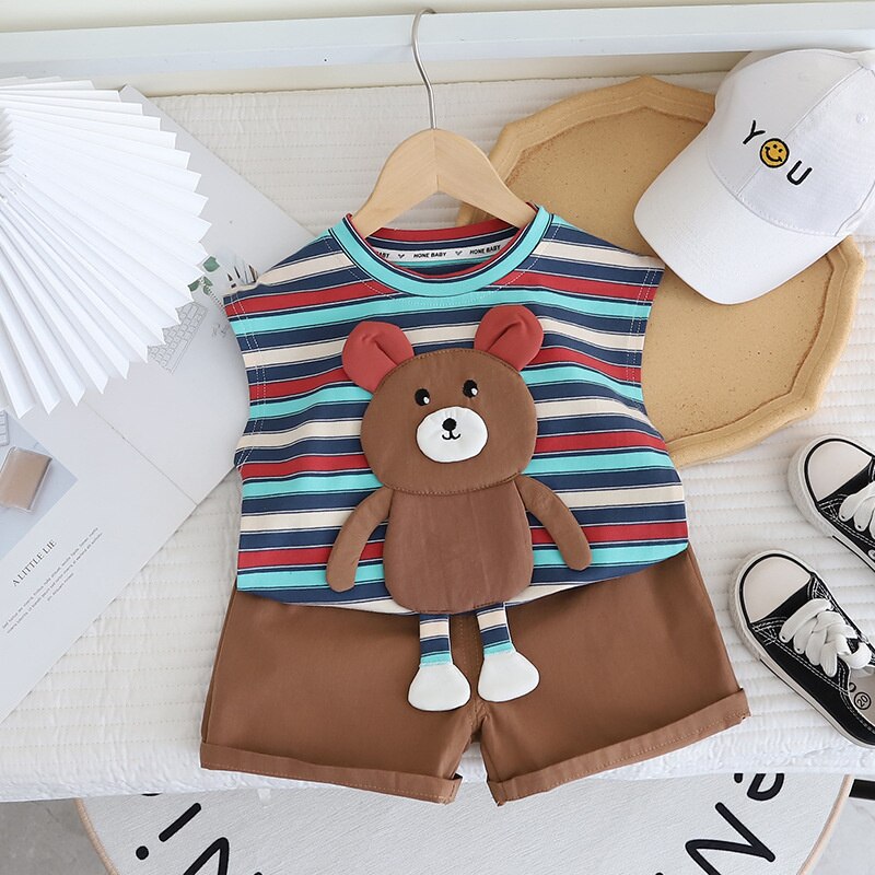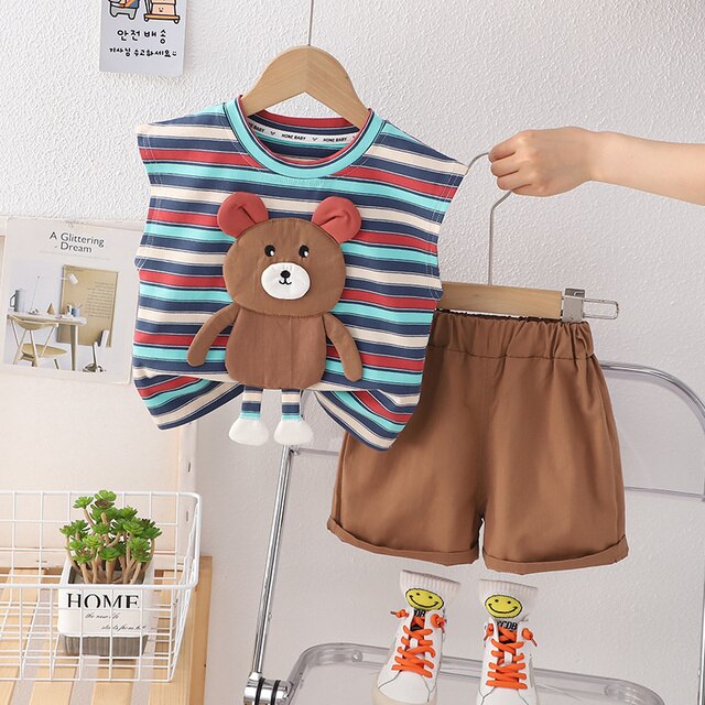 Новая летняя одежда для маленьких девочек, детская одежда, полосатый жилет для мальчиков, шорты, 2 шт./Компл., Повседневный костюм для малышей, детские спортивные костюмыНа 0-5 лет