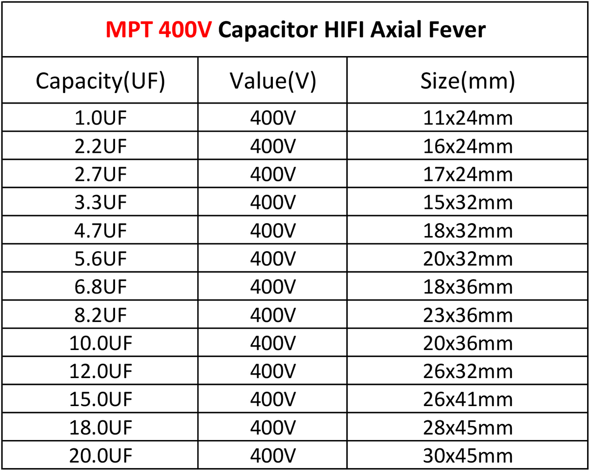 Capacity: 1UF-20UF