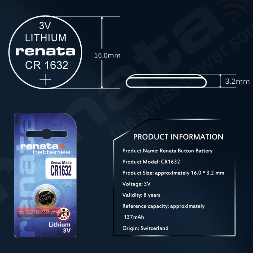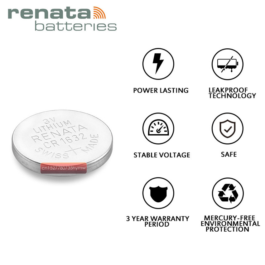 2 шт., литиевые батареи Renata CR1632, 3 в, 100 оригинальный бренд, аккумулятор renata 1632