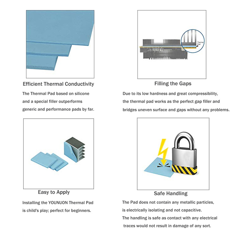 • ЛЕГКО И БЫСТРО ПРИМЕНЯТЬ: установка термоподушки-это детская игра и идеально подходит для начинающих. Идеальный высокопроизводительный заполнитель зазоров! Электрически не Проводящий.