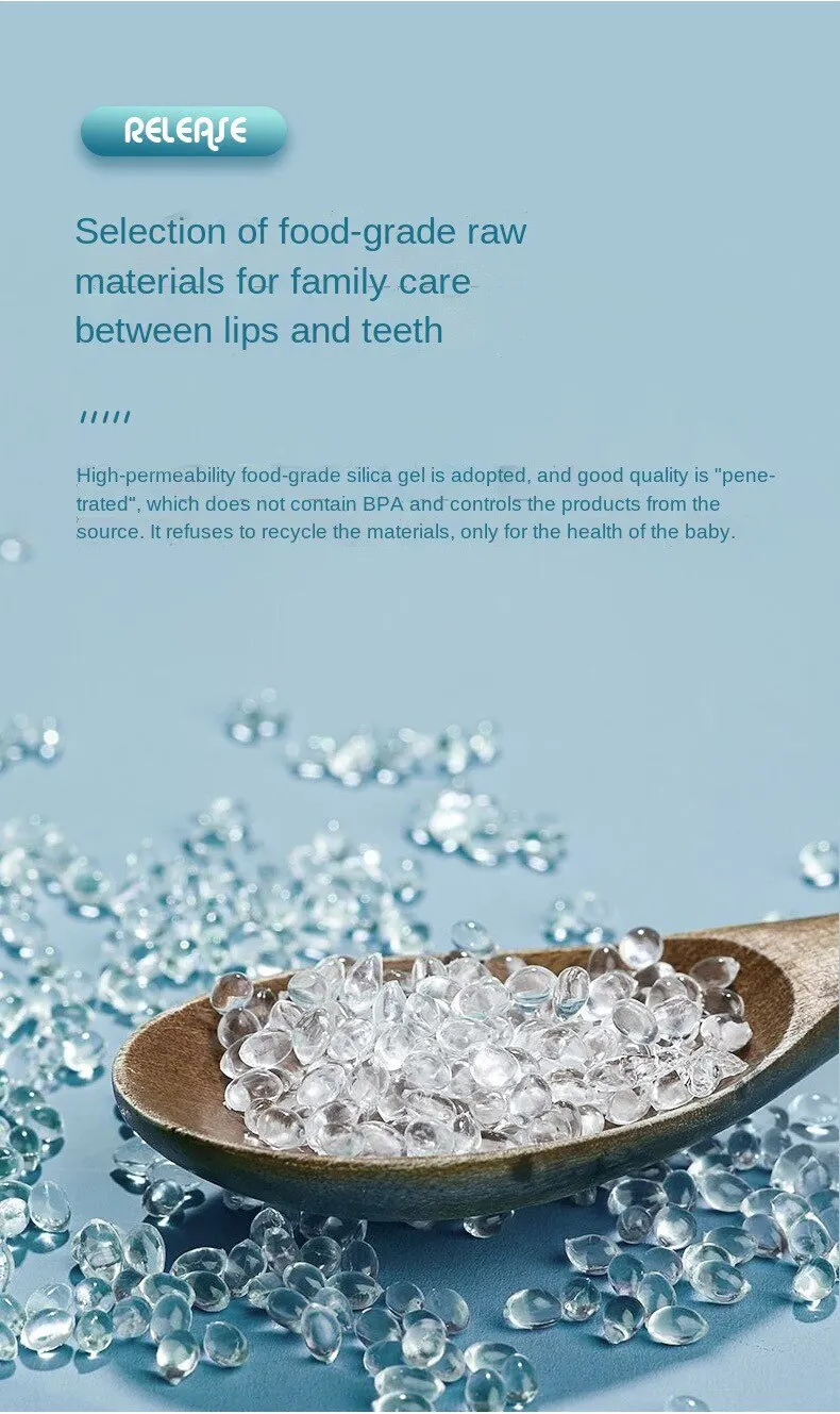 【Пищевой материал】 Наша Насадка-щетка Прочная и мягкая, не треснет и не причинит вреда вашему ребенку и его зубам. Мы приняли пищевой силикон, а наши зубные щетки мягкие и без запаха.