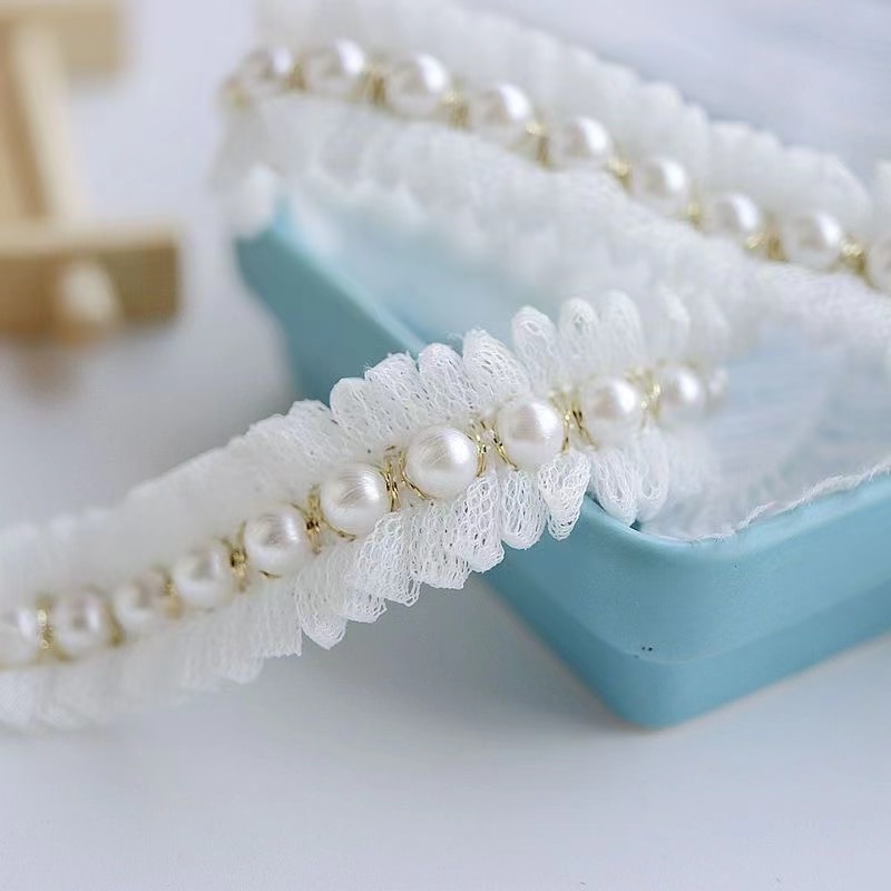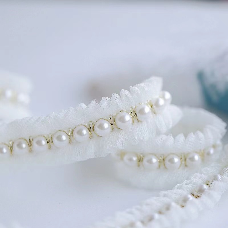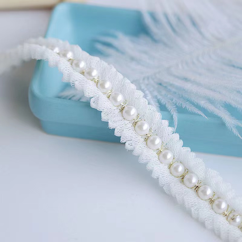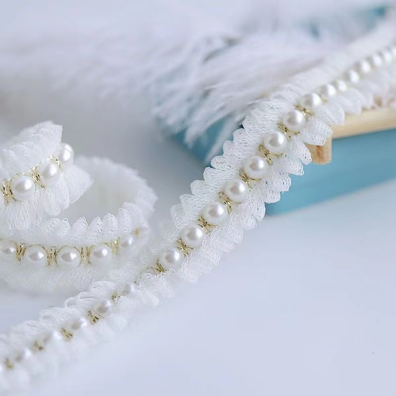 2 см широкая белая сетка, плиссированная ткань, блестящий бисер, бахрома, кружевная отделка краев, одежда, воротник, лента, свадебное платье, сделай сам, аппликация, Декор