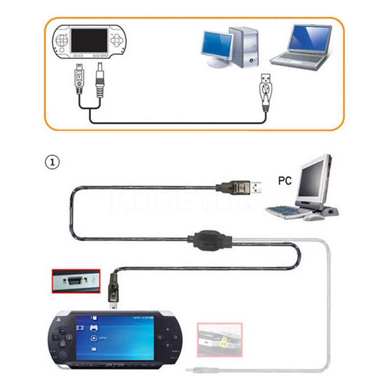 2-в-1 USB-кабель для передачи данных Зарядное устройство Зарядный шнур для игровых аксессуаров PSP 2000 3000