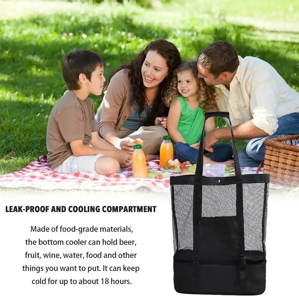 2-в-1 пляжная сумка, сетчатая Съемная изоляционная сумка для пикника, портативная прочная Герметичная сумка для пикника