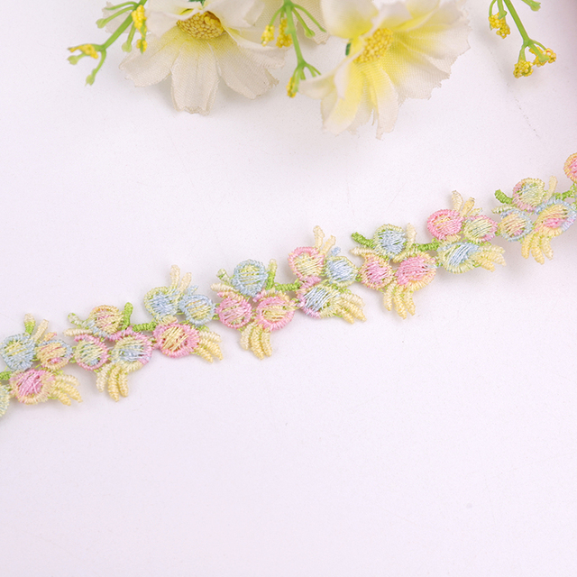 2 ярда, цветной цветок, водорастворимое шитье, кружево, свадебная ткань, «сделай сам», аксессуары для одежды, вышитая кружевная отделка из полиэстера