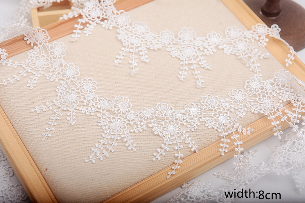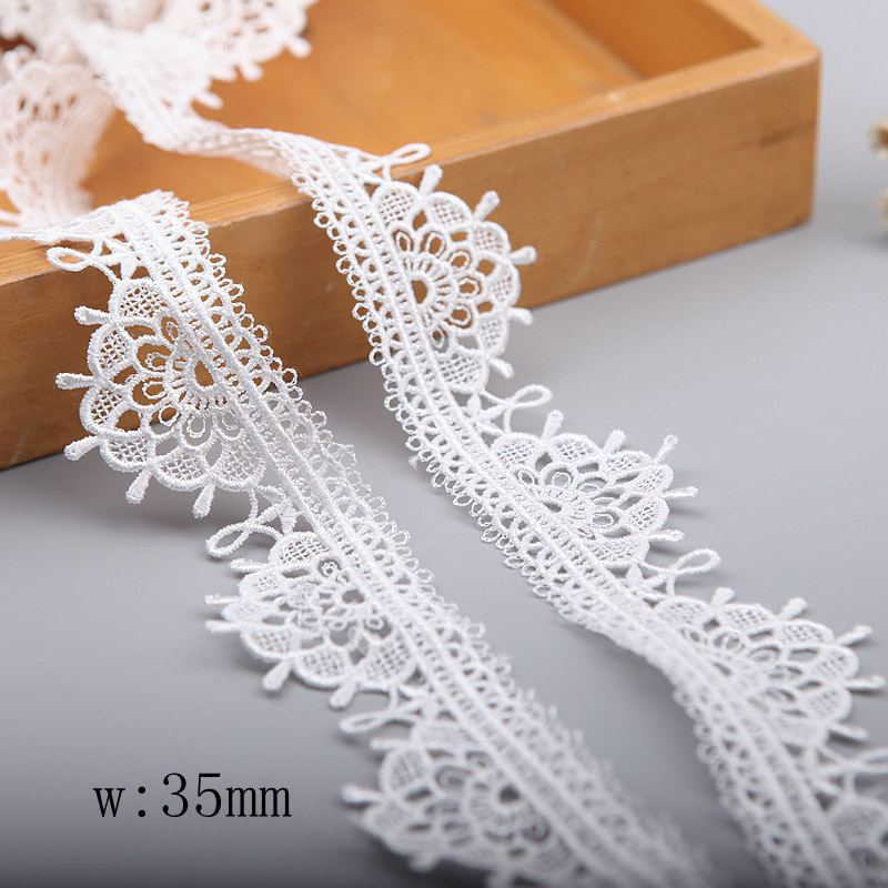 2 ярда/Лот, кружевная лента, белая кружевная ткань, 100% полиэстер, аксессуары для одежды, аксессуары для одежды, кружевная отделка, 19527