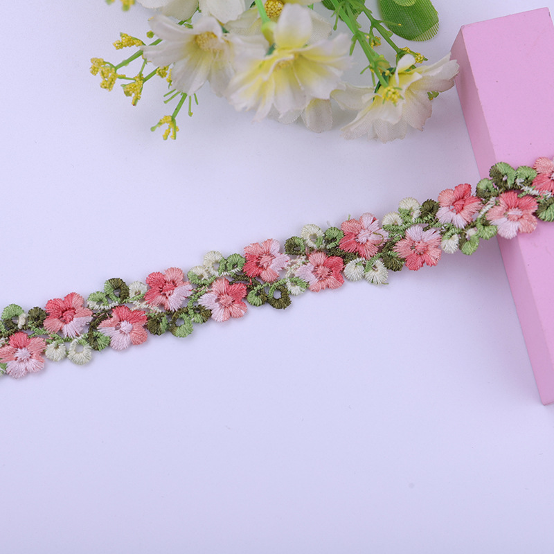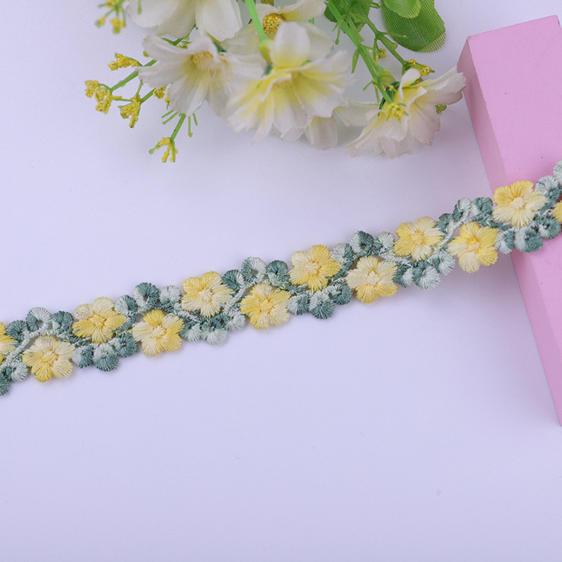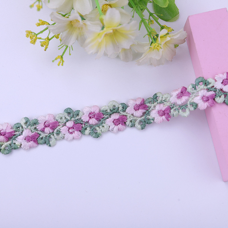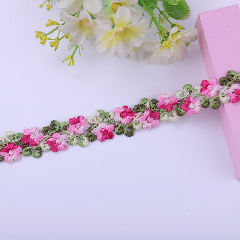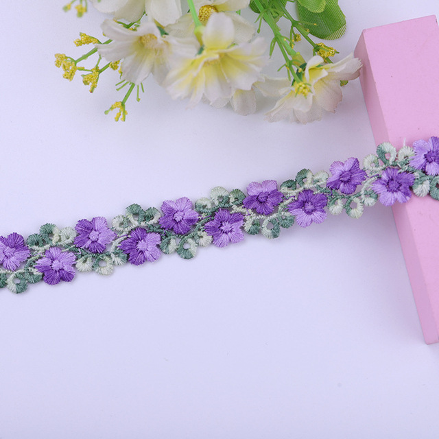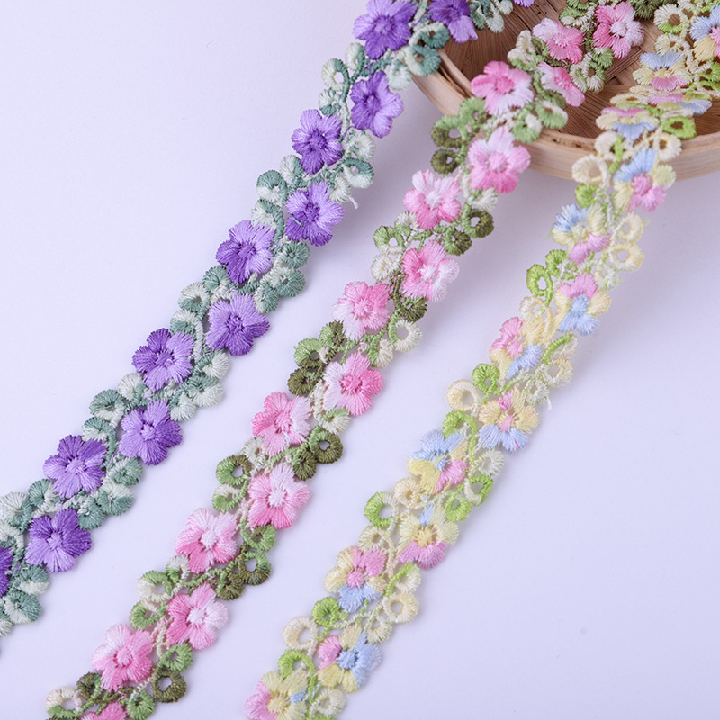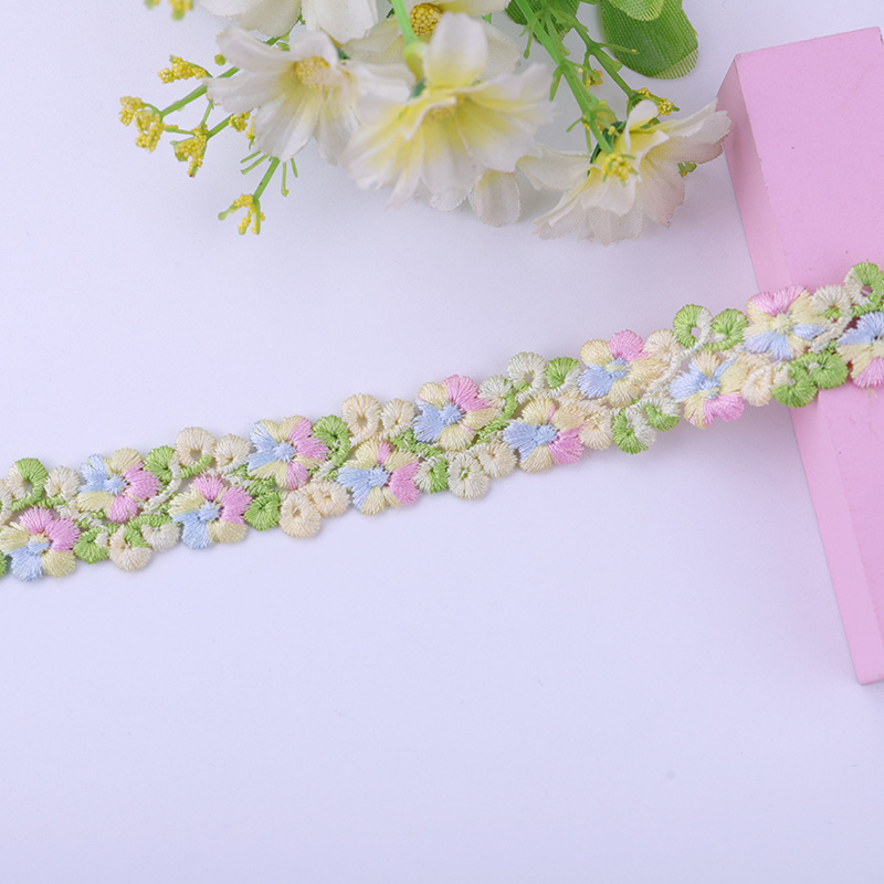 2 ярда свежий стиль полиэстер Кружева многоцветная Цветочная тесьма для шитья вечерние платья вышивка кружева для одежды аксессуары
