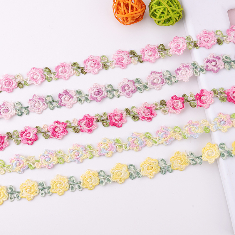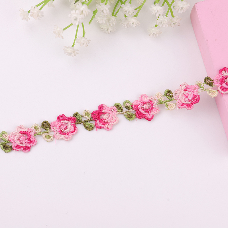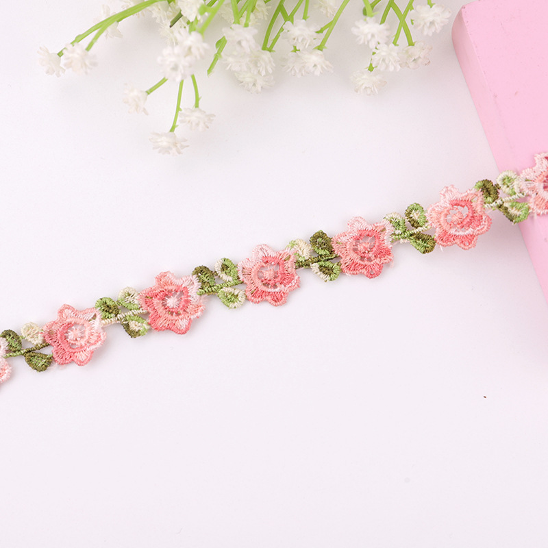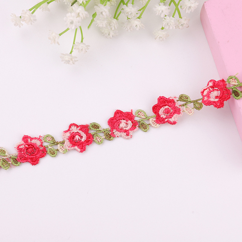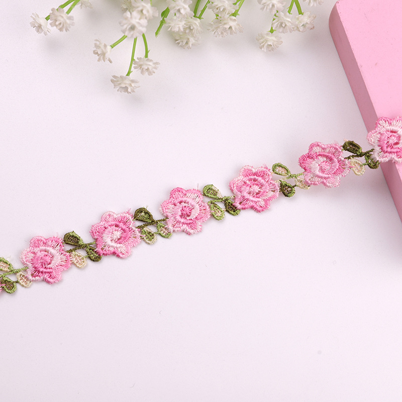 2 ярда вышивка цветная Роза кружевная отделка штрих-код DIY ожерелье для одежды ошейники для свадебной вечеринки шитье украшение ручной работы аксессуары