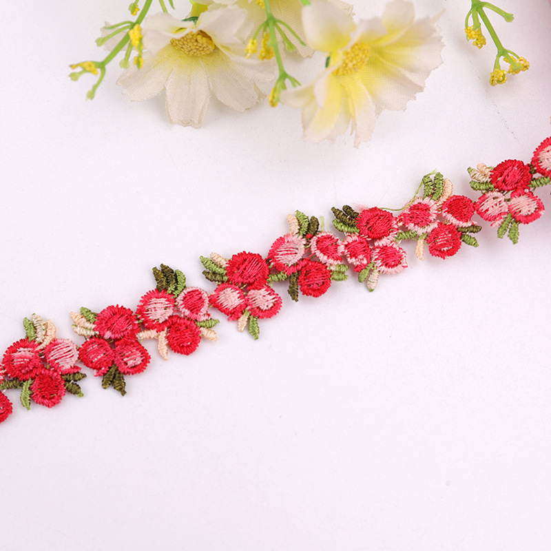 2 ярда вышивка кружева цвет вишни цветок отделка штрих-кода одежда женское шитье ручной работы декоративные аксессуары