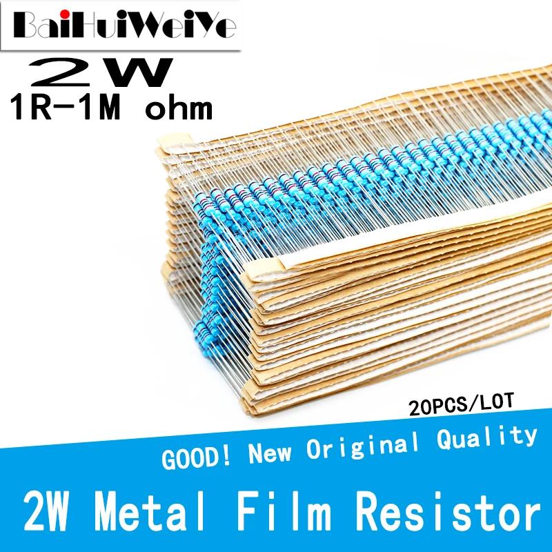20 шт., металлический пленочный резистор 2 Вт 0R-2,2 M 1% 2,2 10 100 120 150 220 270 330 390 1K 470K 2,2 K 10K 15K 22K 47K 4,7 K 100K 470K 1M Ом