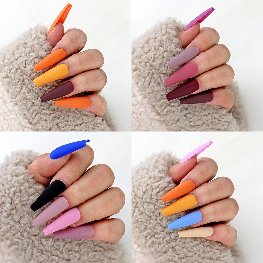20 шт., накладные ногти, однотонные Матовые акриловые ногти, полное покрытие, длинный гроб, наращивание ногтей, приспособления для искусственного маникюра