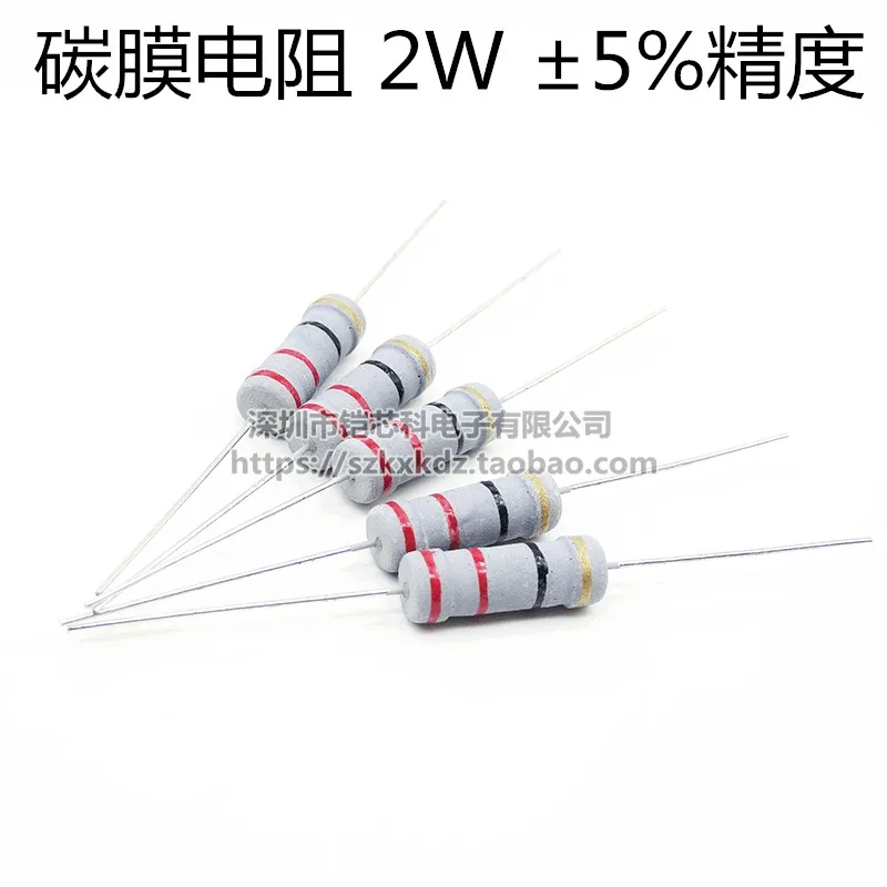 20 шт. Углеродный пленочный резистор 2 Вт 5% 1 Ом-910K 6,2 10 100 120 150 180 Ом 100K 33K 1K 10K Сопротивление цветного кольца 10R