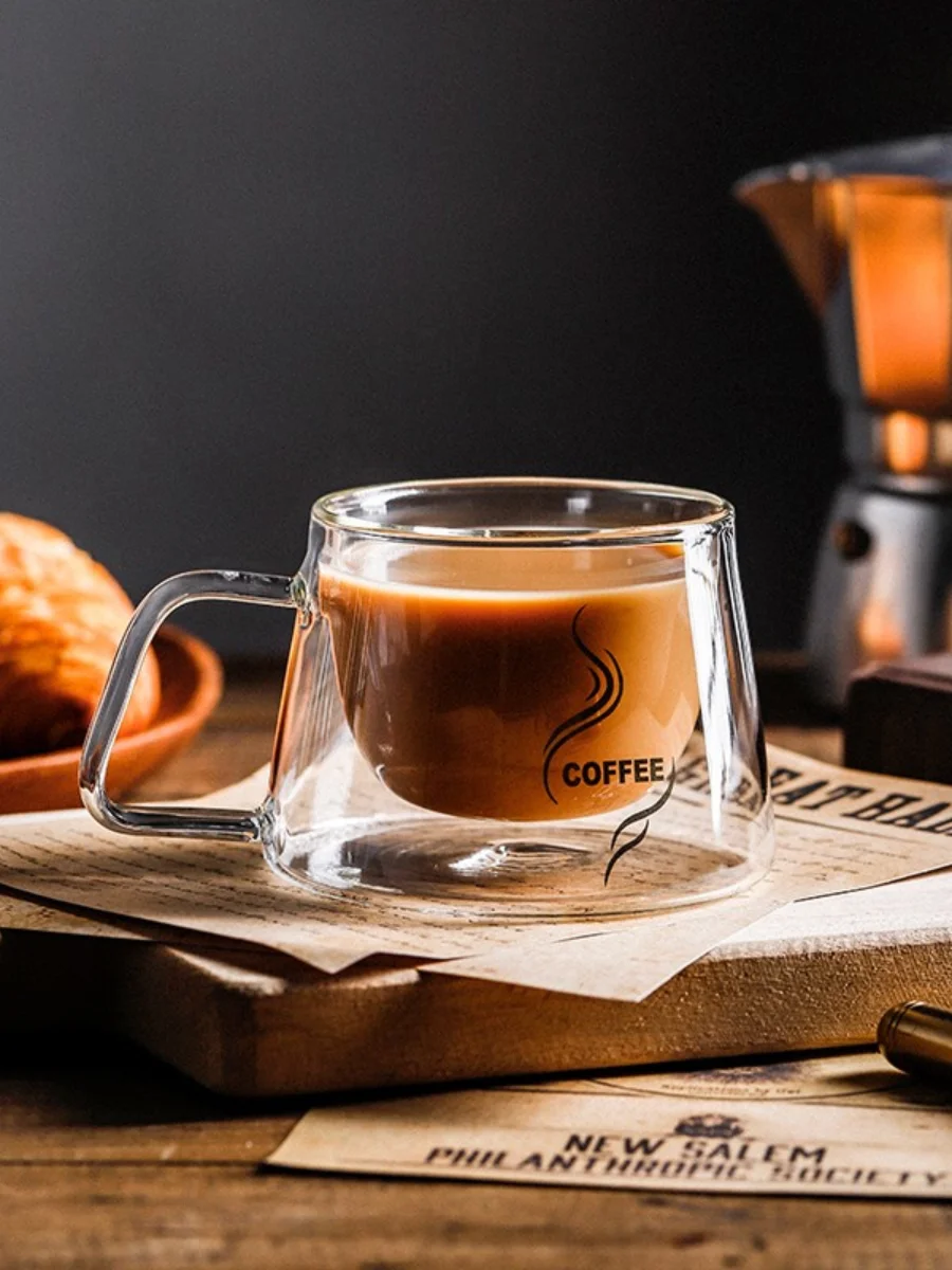 200 мл Стеклянные кофейные чашки с двойными стенками Термостойкие Эспрессо-кружки Сок для латте-капучино и пивной бокал Подарок