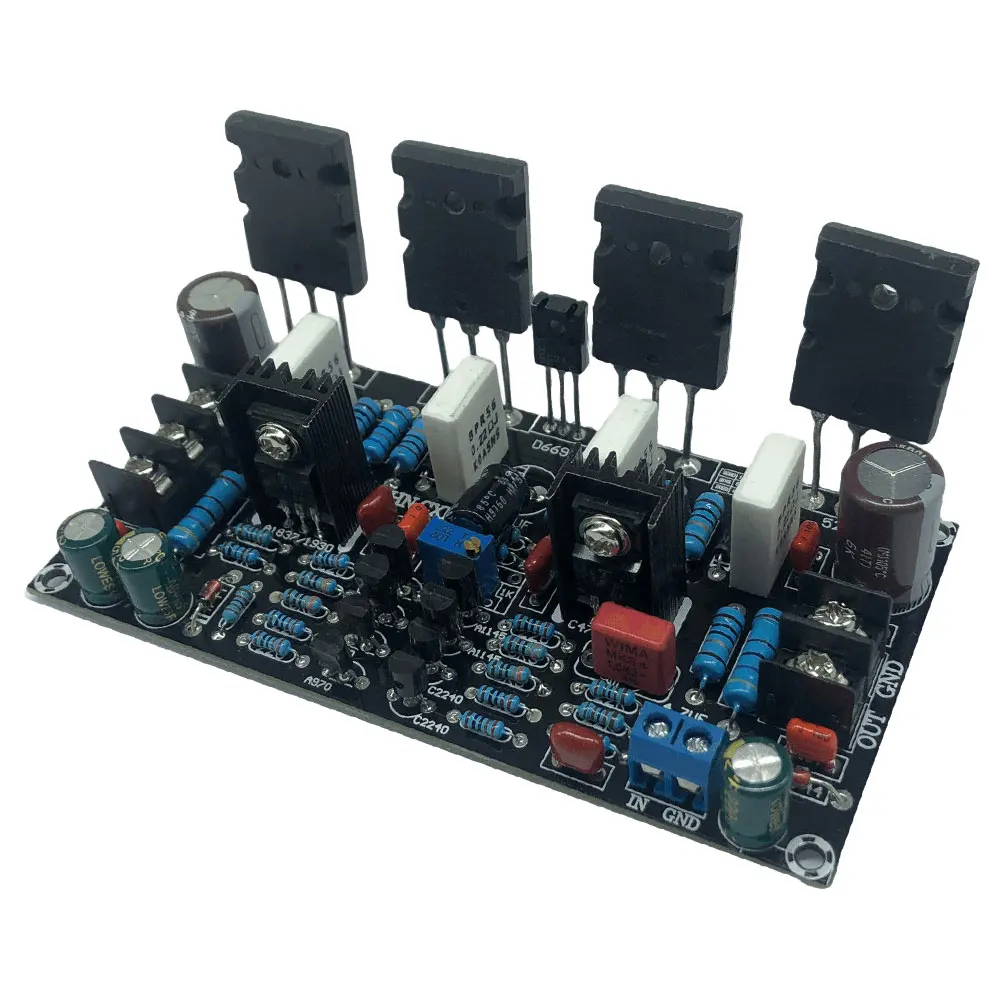 2. Высокое напряжение транзисторы для звуковых сигналов:Плата одноканального усилителя имеет высокое напряжение A970/C2240 транзисторы для звуковых сигналов в схеме двойные дифференциальные в сочетании с усилением напряжения с использованием транзисторов мощности A1145/C2705 и A1837/C4793 на выходном каскаде. Эти компоненты обеспечивают надежную и мощную работу.